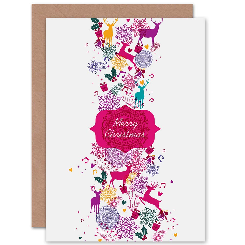Reindeer Snowflakes Pattern Merry Xmas Christmas Card