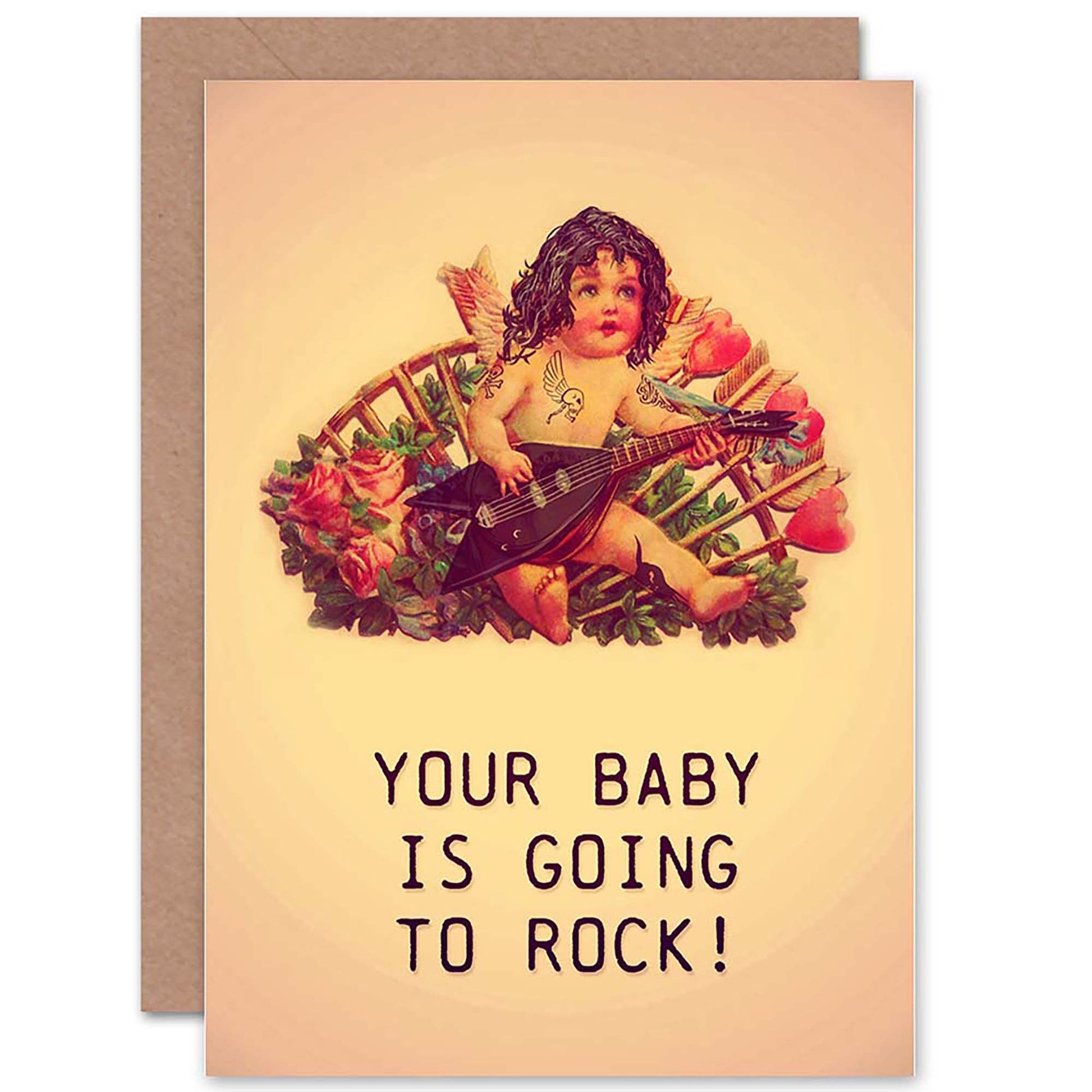 Rock Star Cherub Angel Vintage Style New Baby Card