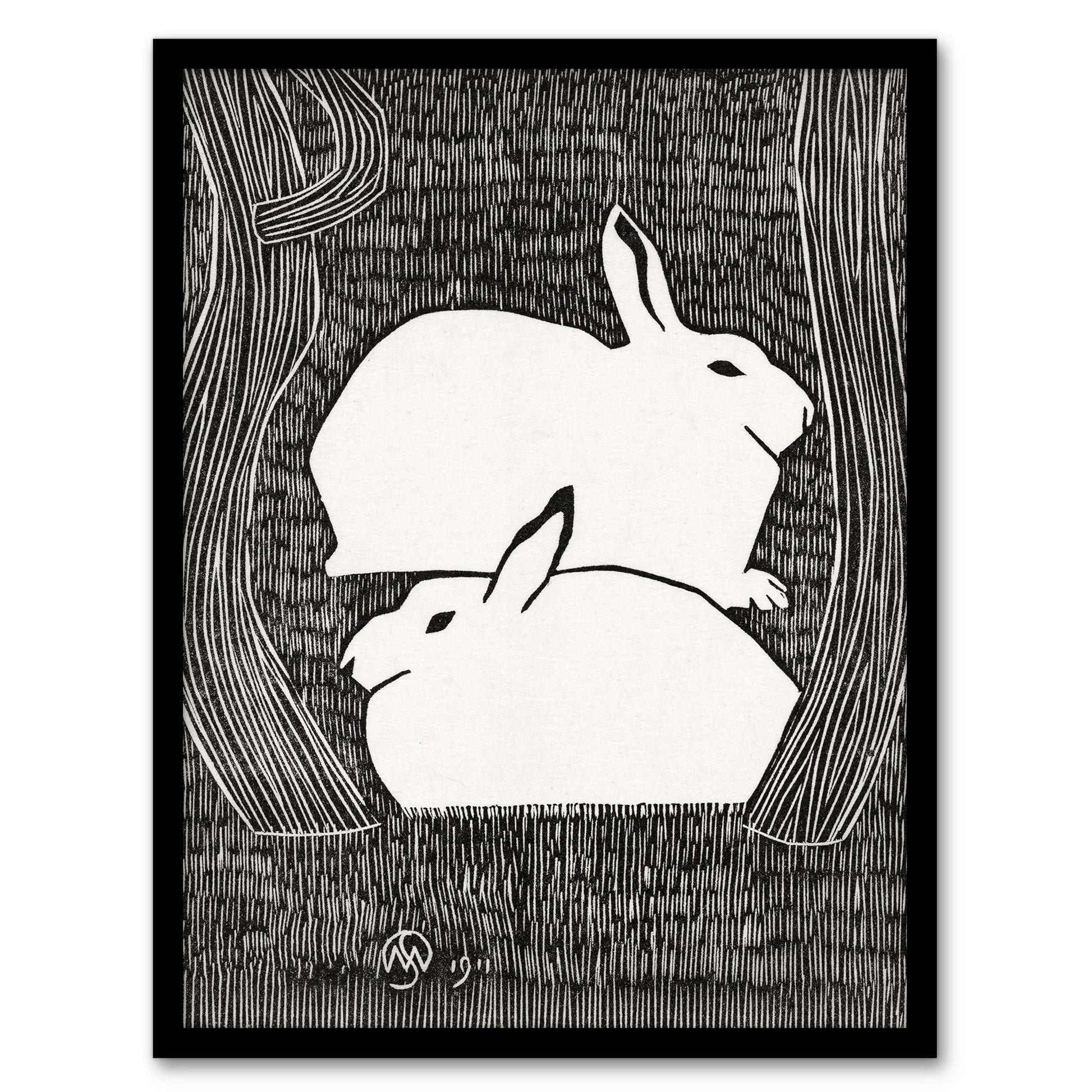 Samuel J De Mesquita Framed Wall Art Print Two Stylised Snow Hares Home Décor