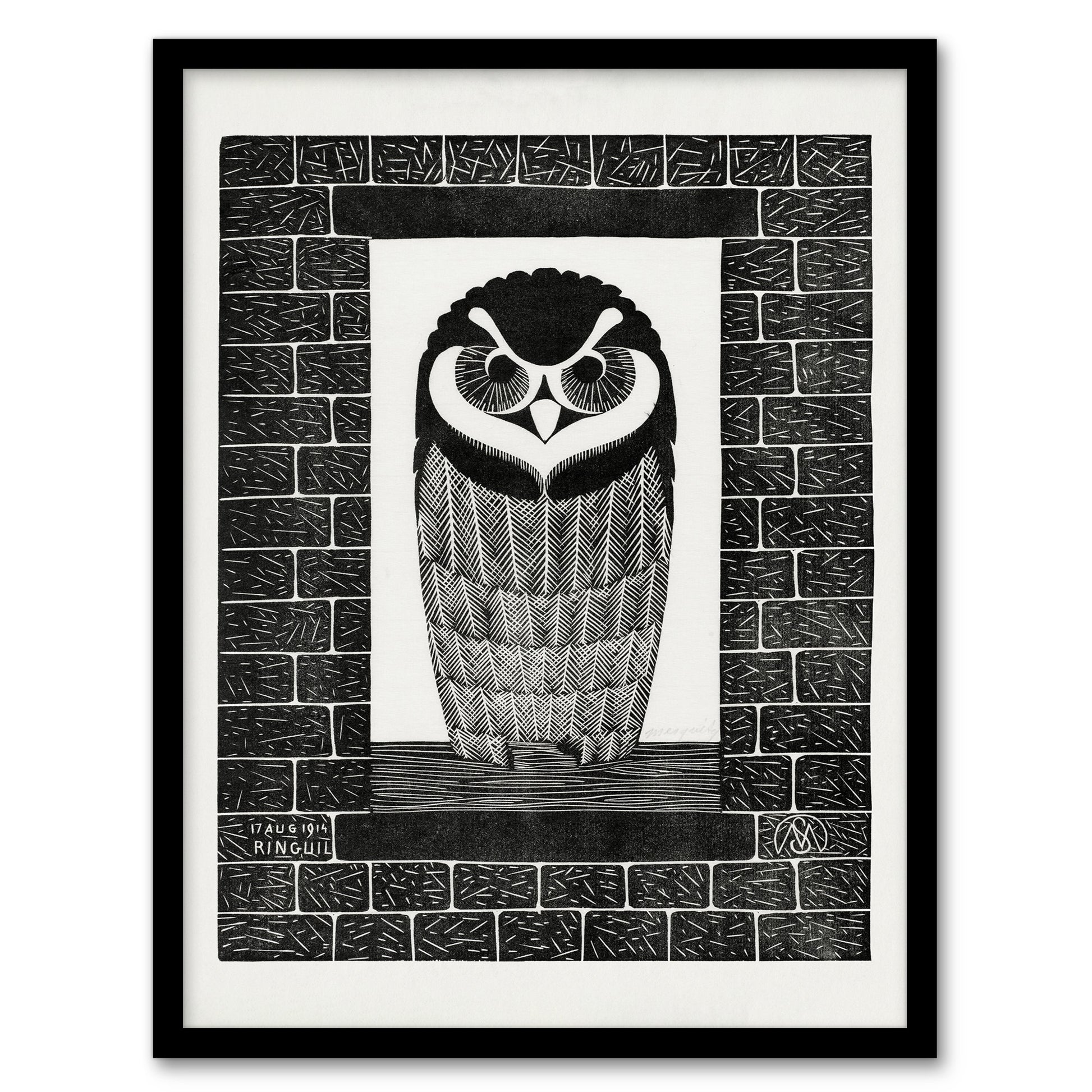Samuel J De Mesquita Framed Wall Art Ringuil Owl Bird on a Window Home Décor