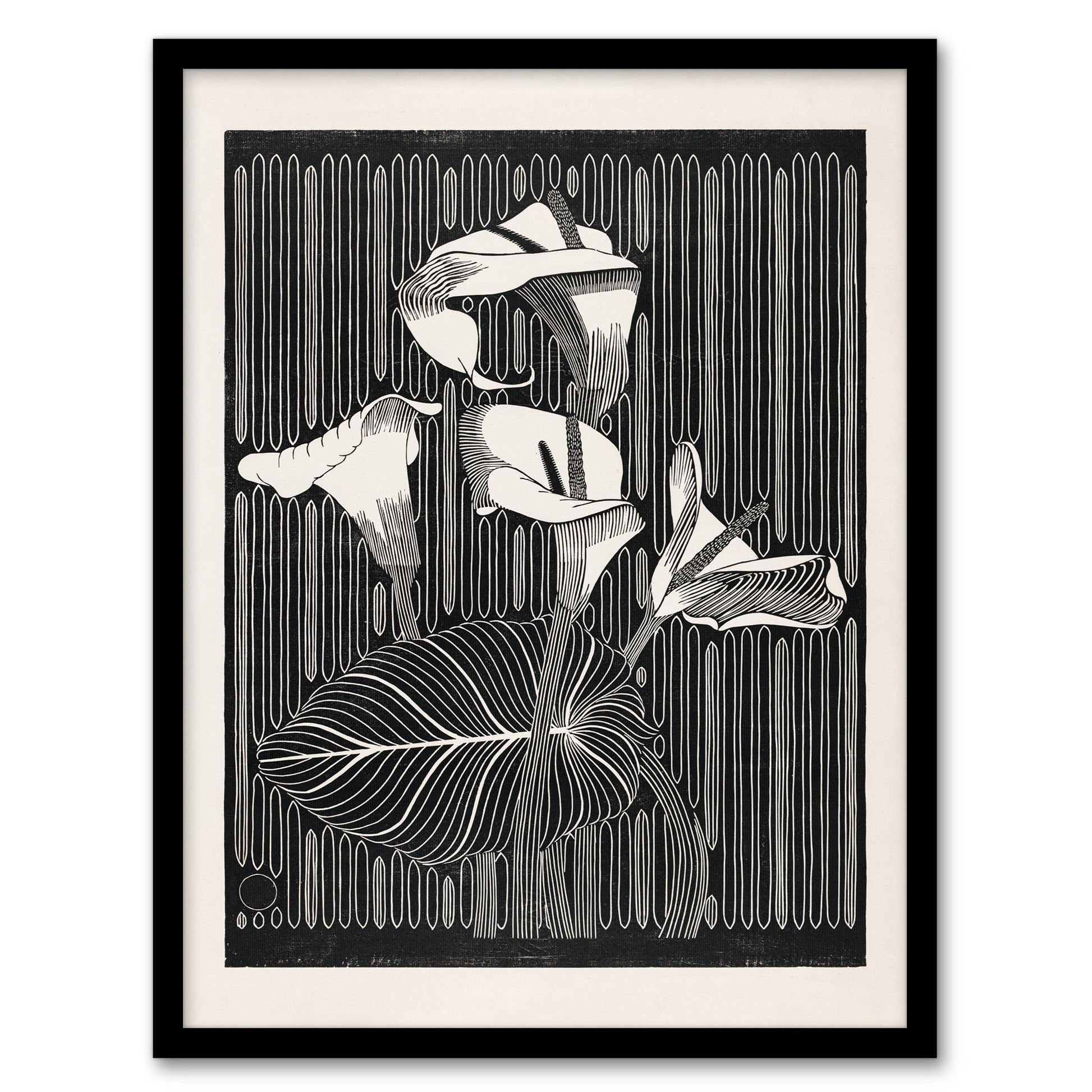 Samuel J De Mesquita Framed Wall Art Stylised Calla Lily Flowers Home Décor