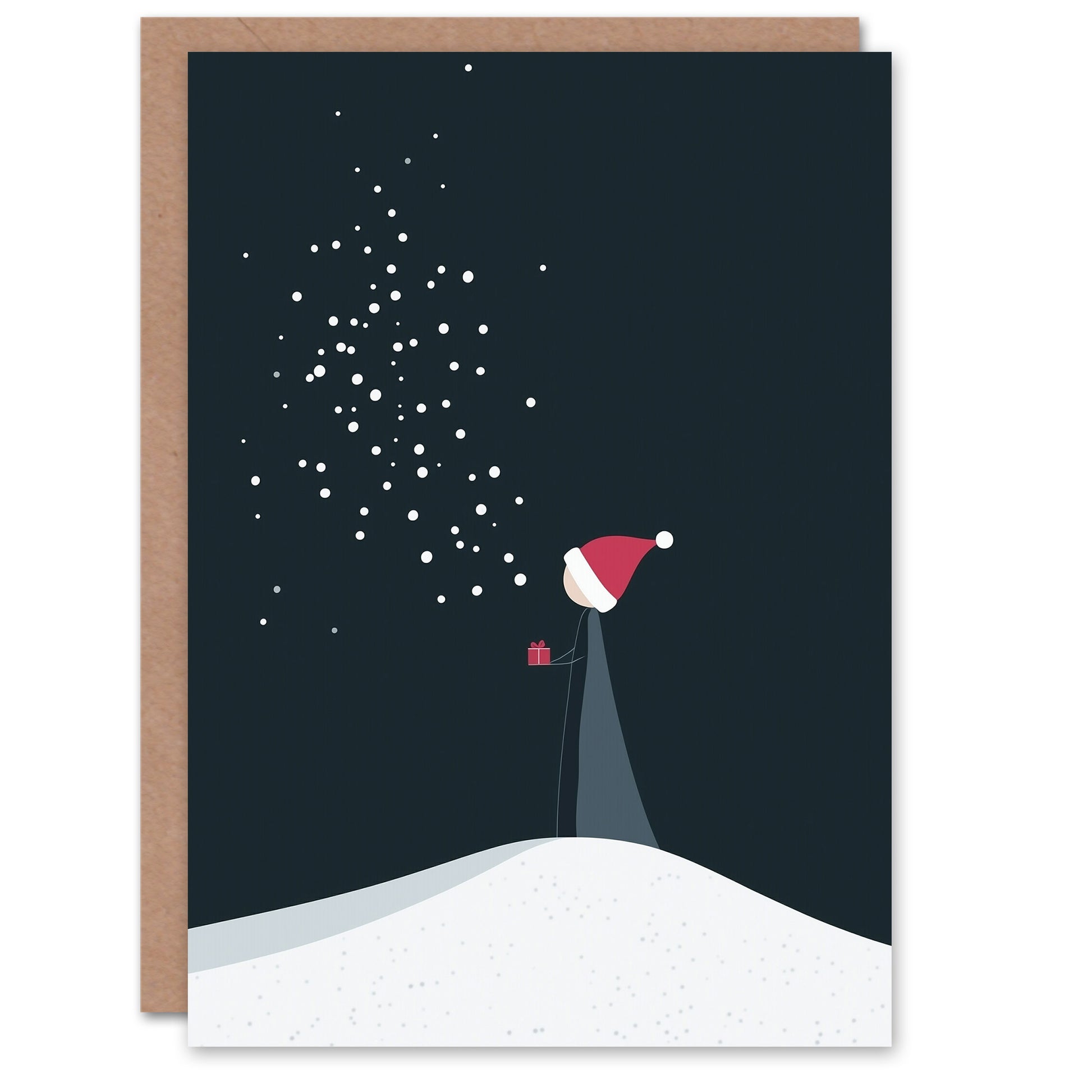 Santa Hat Child Present Snow Minimalist Modern Christmas Card