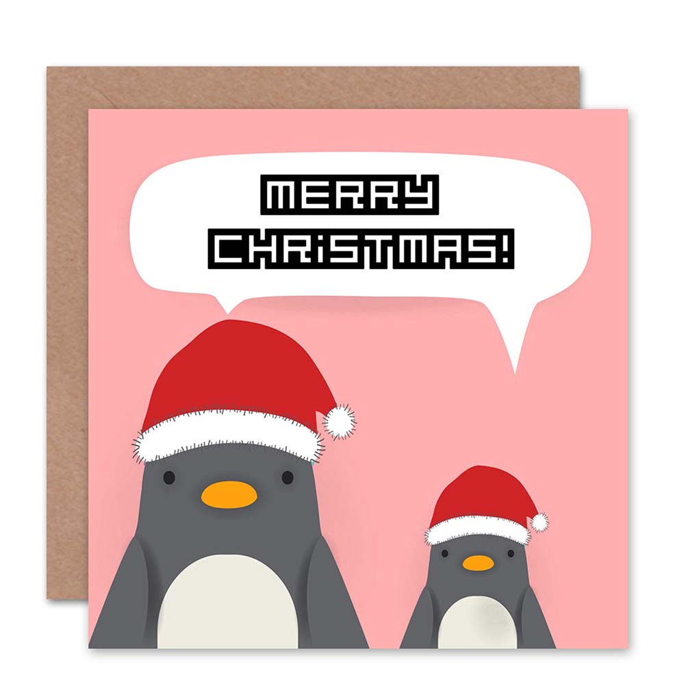 Santa Hat Penguins Merry Christmas Card