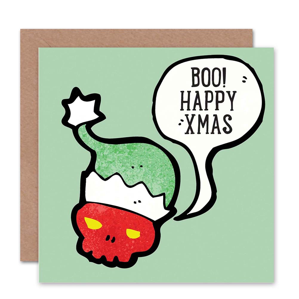 Scary Skull Boo Xmas Happy Christmas Card