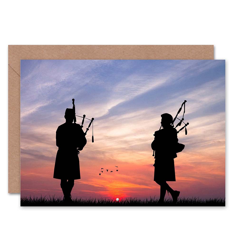 Scottish Bagpipes Silhouette Sunset Art Greeting Card