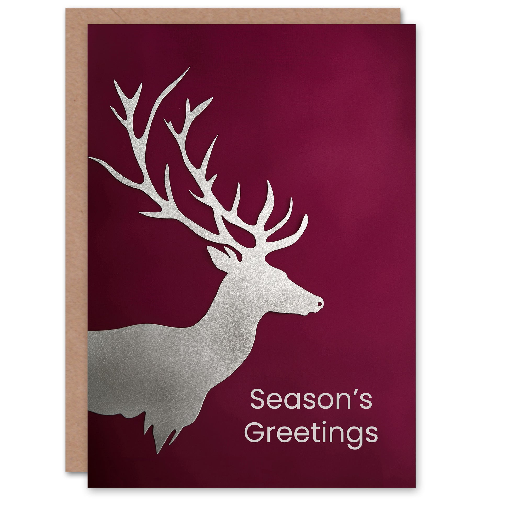Seasons Greetings Silver Stag Silhouette Elegant Burgundy Christmas Card