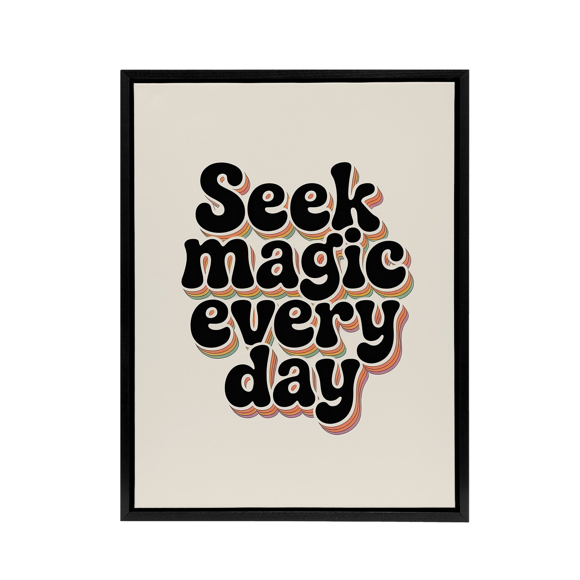Seek Magic Every Day Funky Retro Typography Black Framed Canvas Art Print