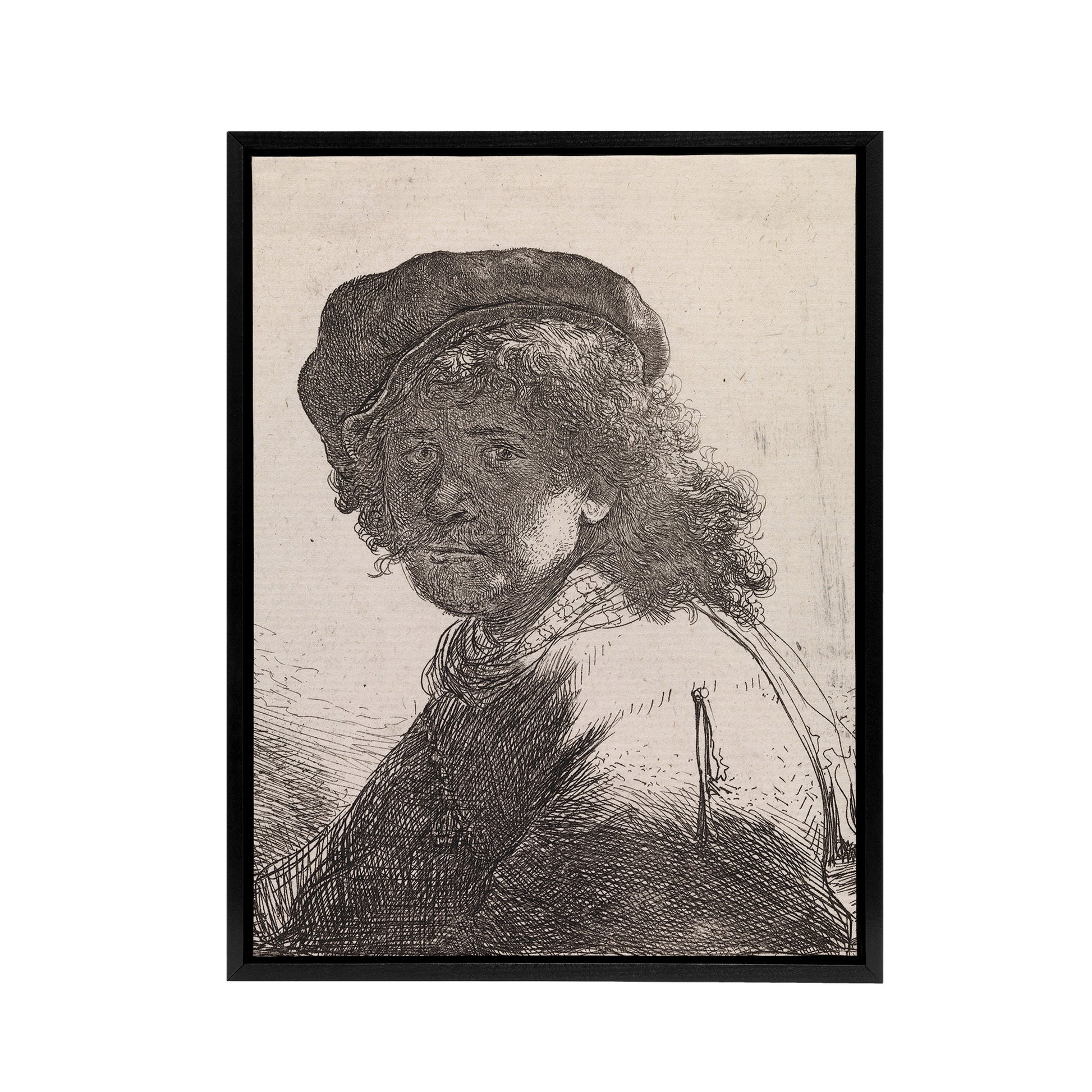 Self portrait in a cap and scarf Rembrandt Framed Canvas Wall Art Print