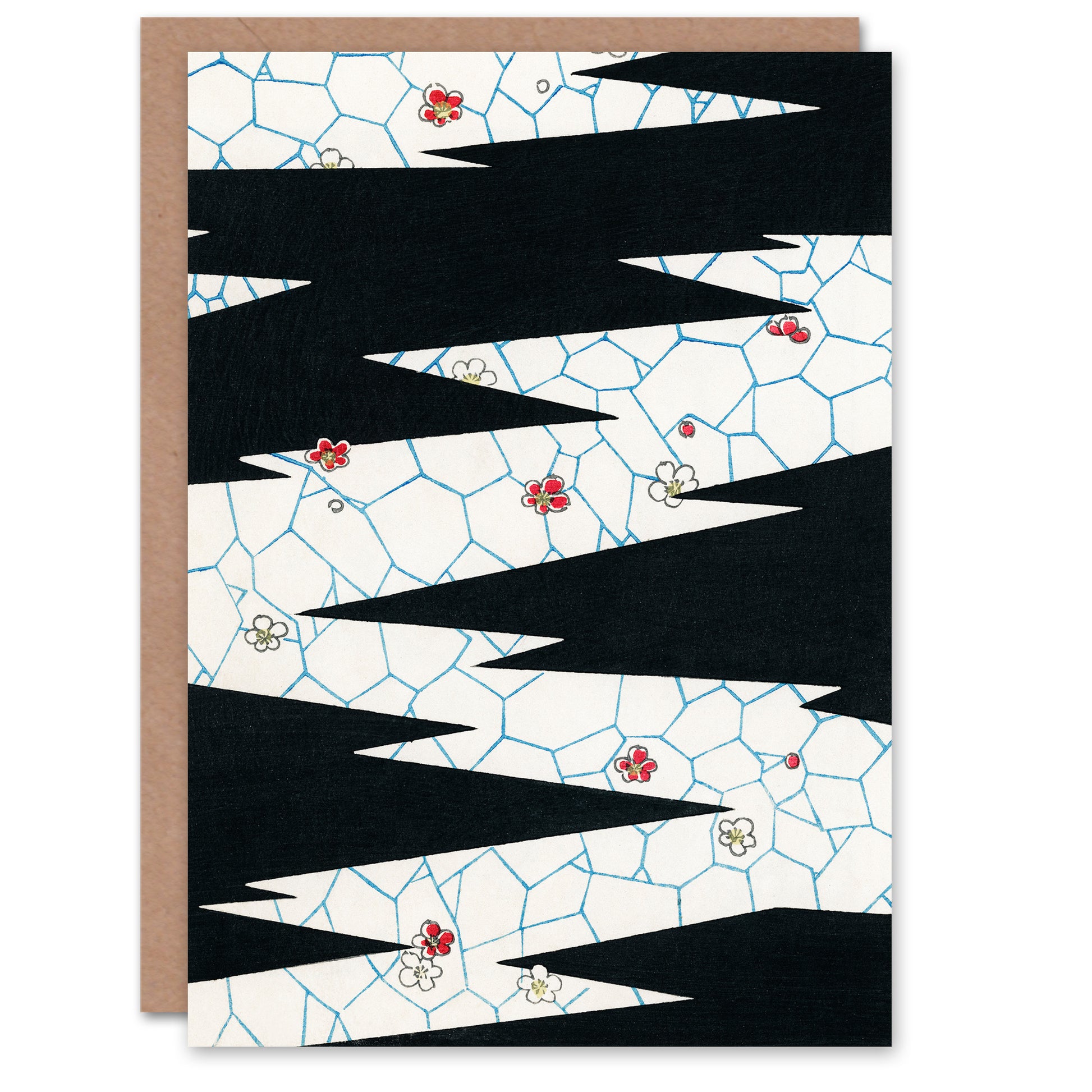Shin Bijutsukai Japanese Flowers On Footpath Pattern Greetings Card