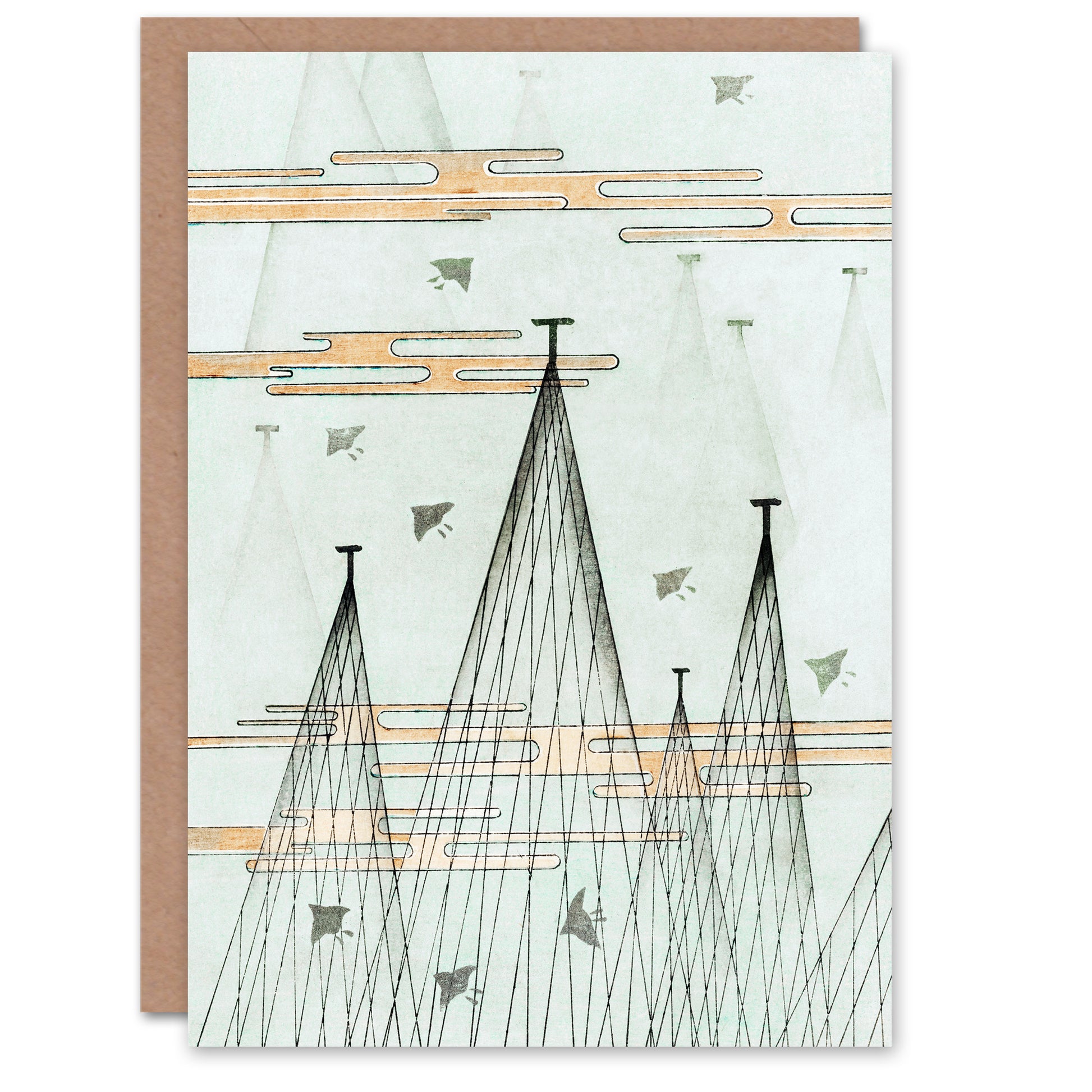 Shin Bijutsukai Japanese Skyscape With Birds Flying Greetings Card