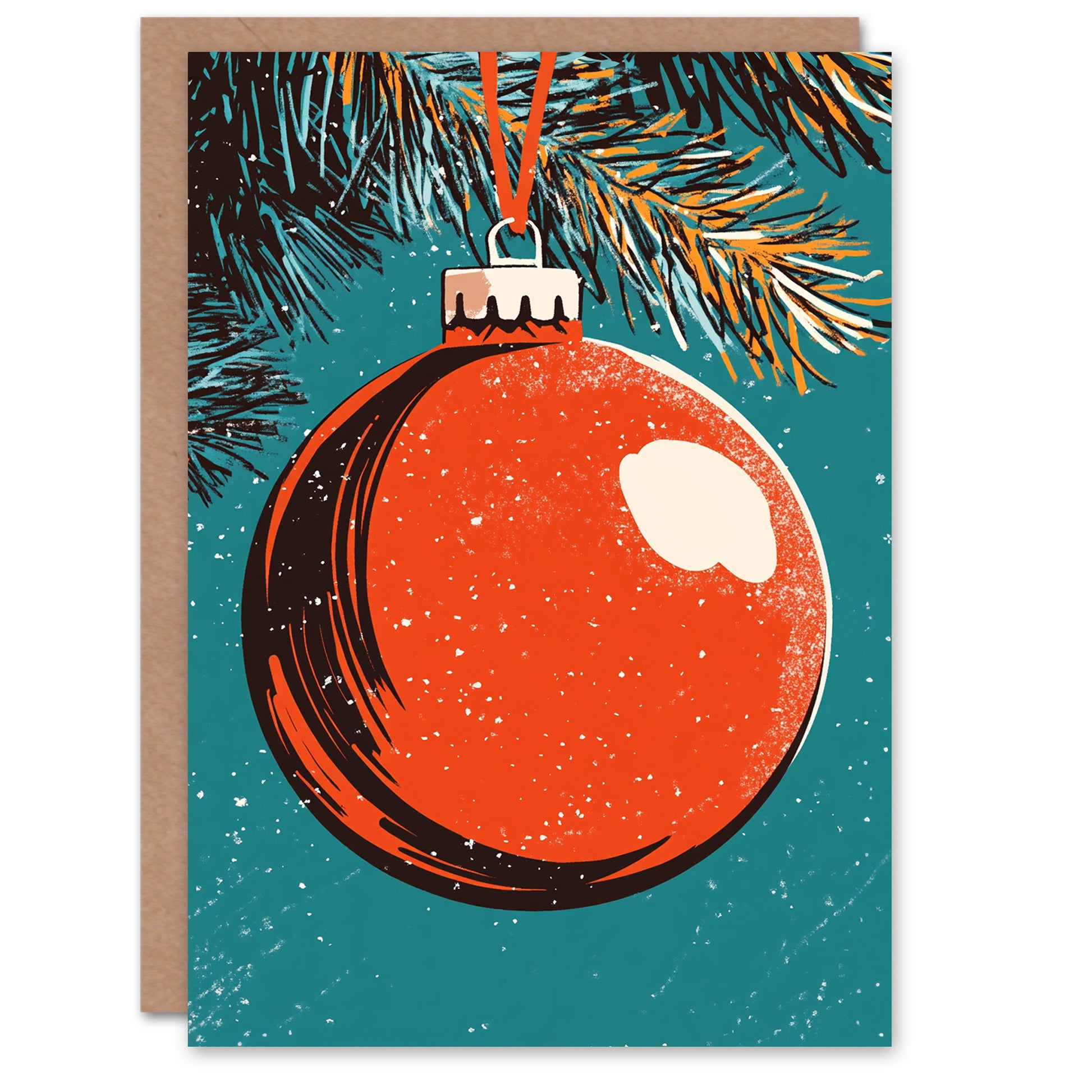 Shiny Red Bauble Pine Tree Retro Festive Xmas Christmas Card
