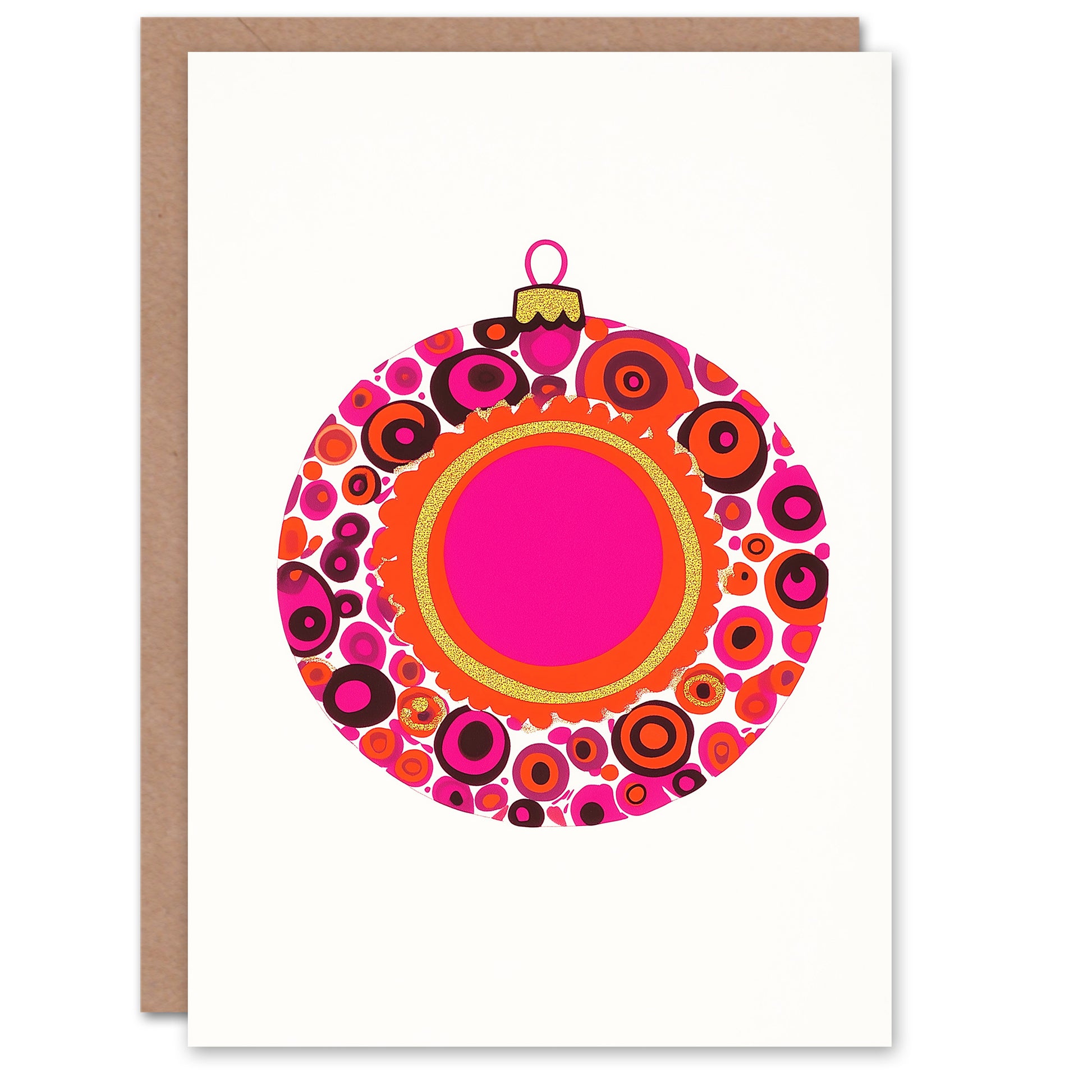 Single Bauble Ornament Design Pink Orange Modern Christmas Card