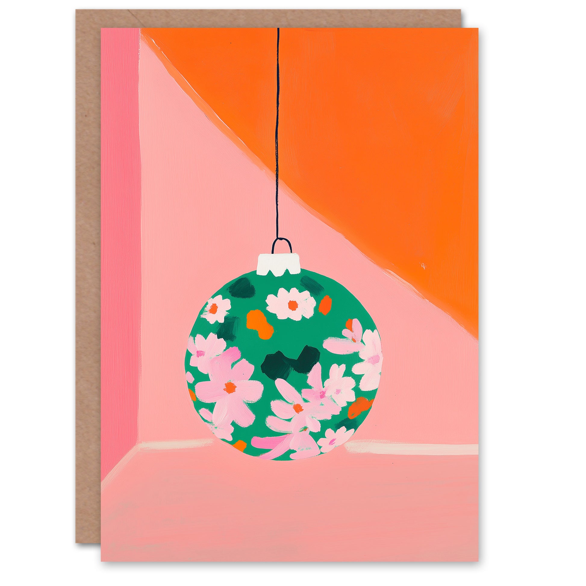 Single Floral Pattern Bauble Ornament Painting Christmas Card