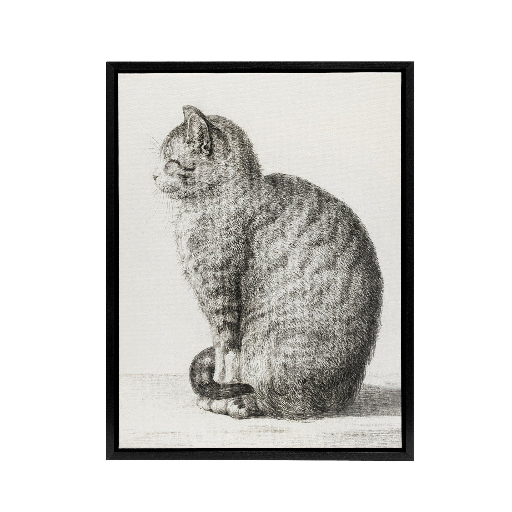 Sitting Smiling Cat Pencil Drawing Bernard Black Framed Canvas Wall Art