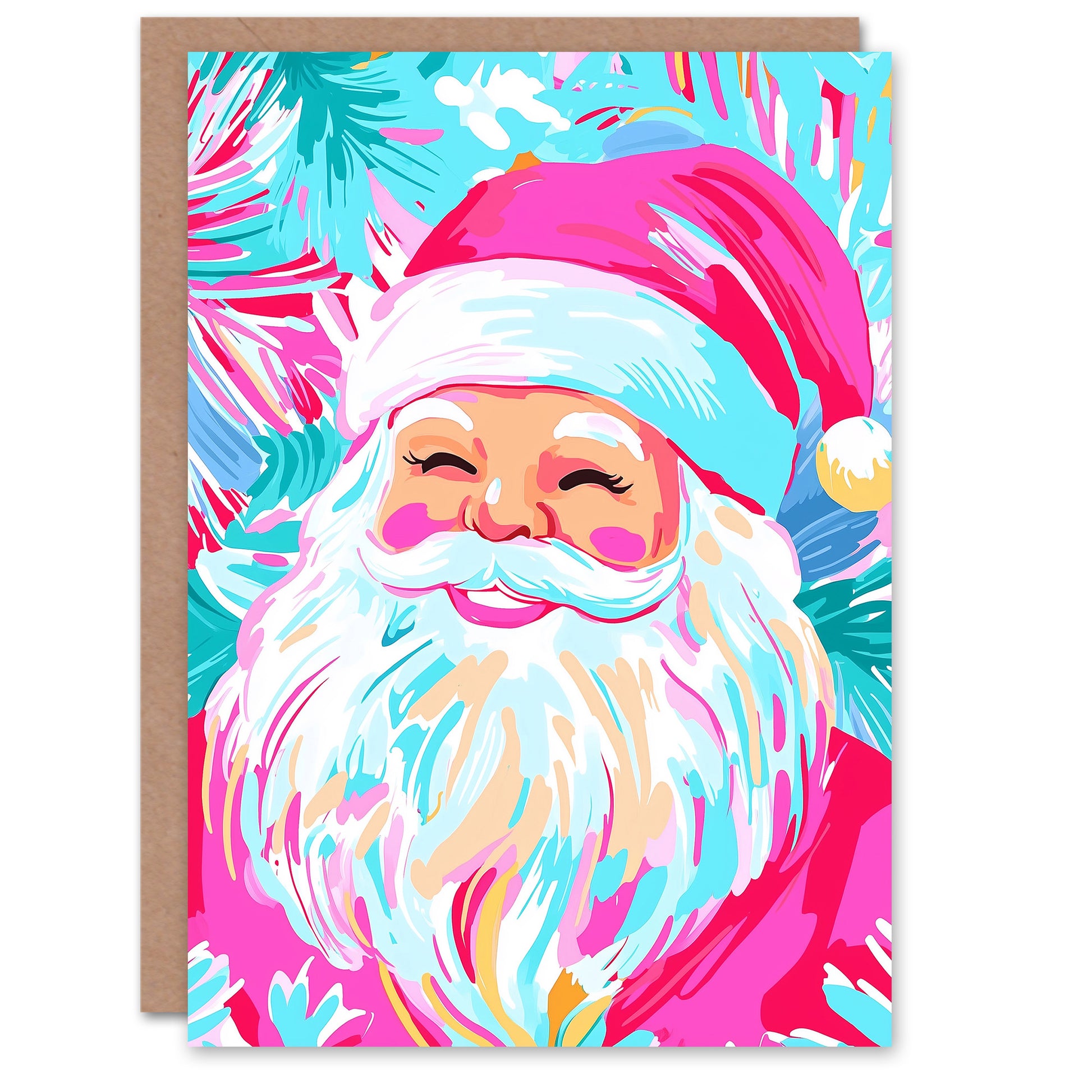 Smiling Santa Claus Vibrant Fuchsia Pink Blue Christmas Card