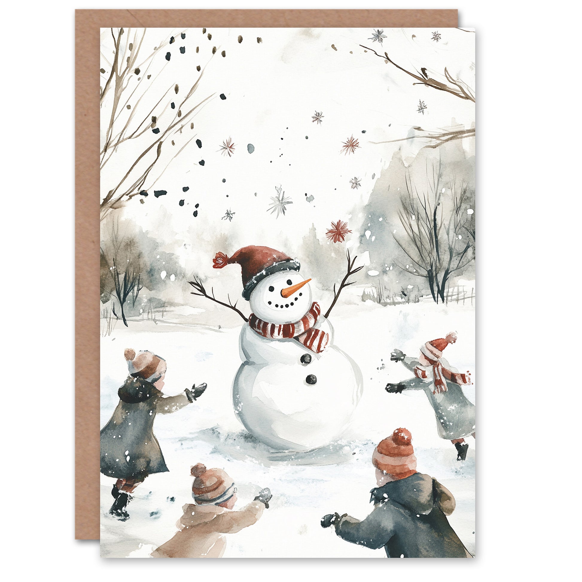 Snow Fight Dance Snowman Winter Fun Festive Christmas Card