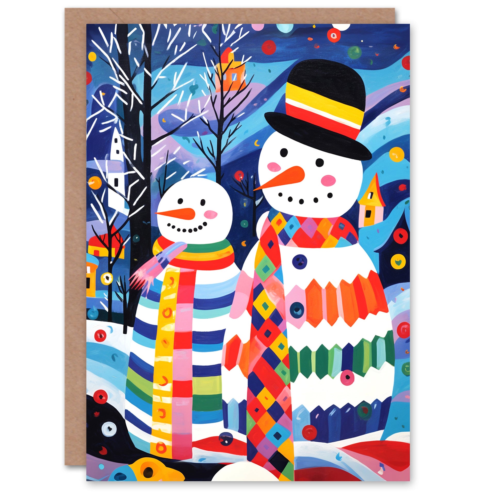 Snowman Couple Colourful Folk Art Fun Festive Christmas Card