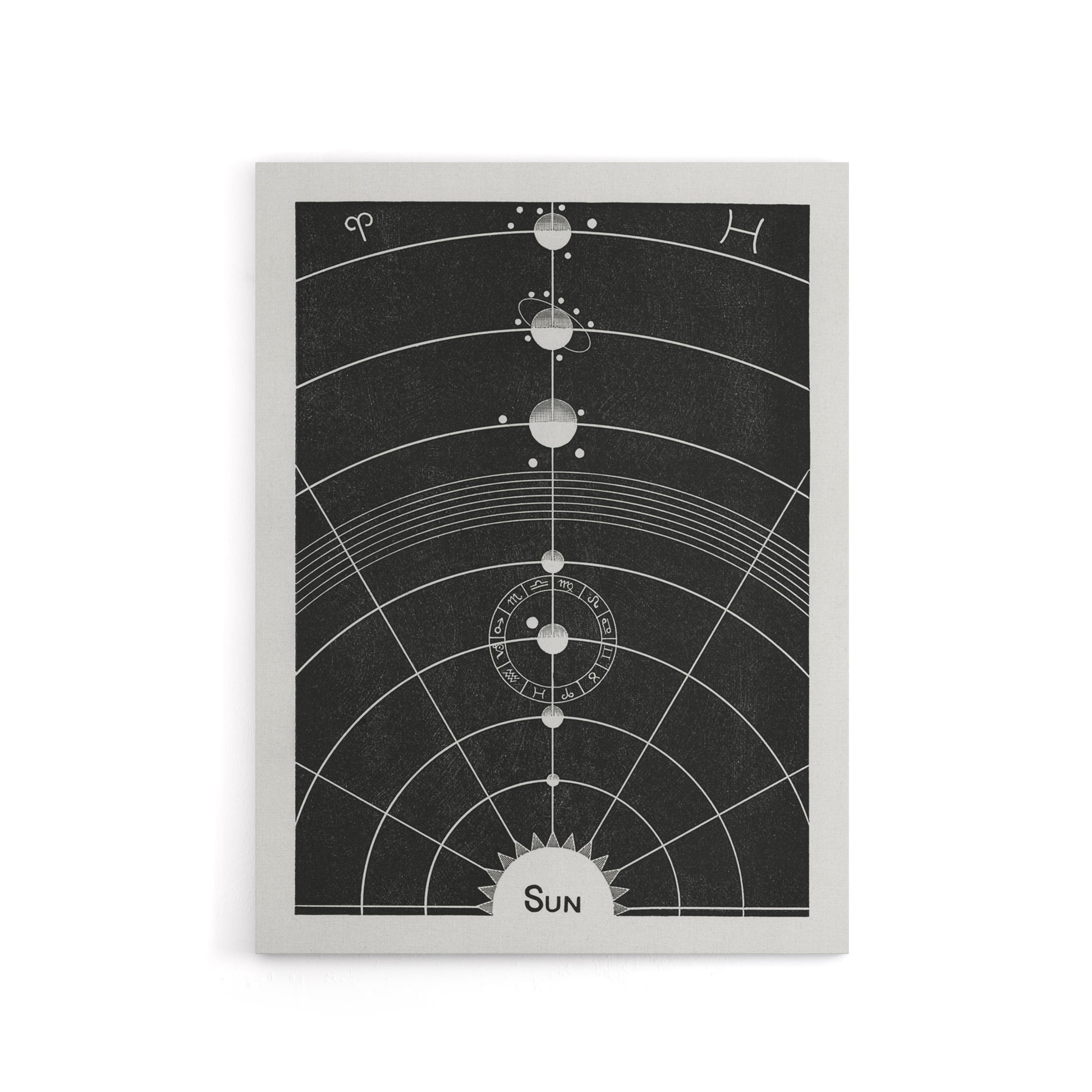 Solar System Diagram – A fascinating Hiram Butler wall art print depicting planets and constellations in classic monochrome. This vintage astronomical illustration celebrates cosmic order, perfect for study or library spaces. It adds mystery, structure, and timeless celestial beauty to your wall decor with precise linework and form.