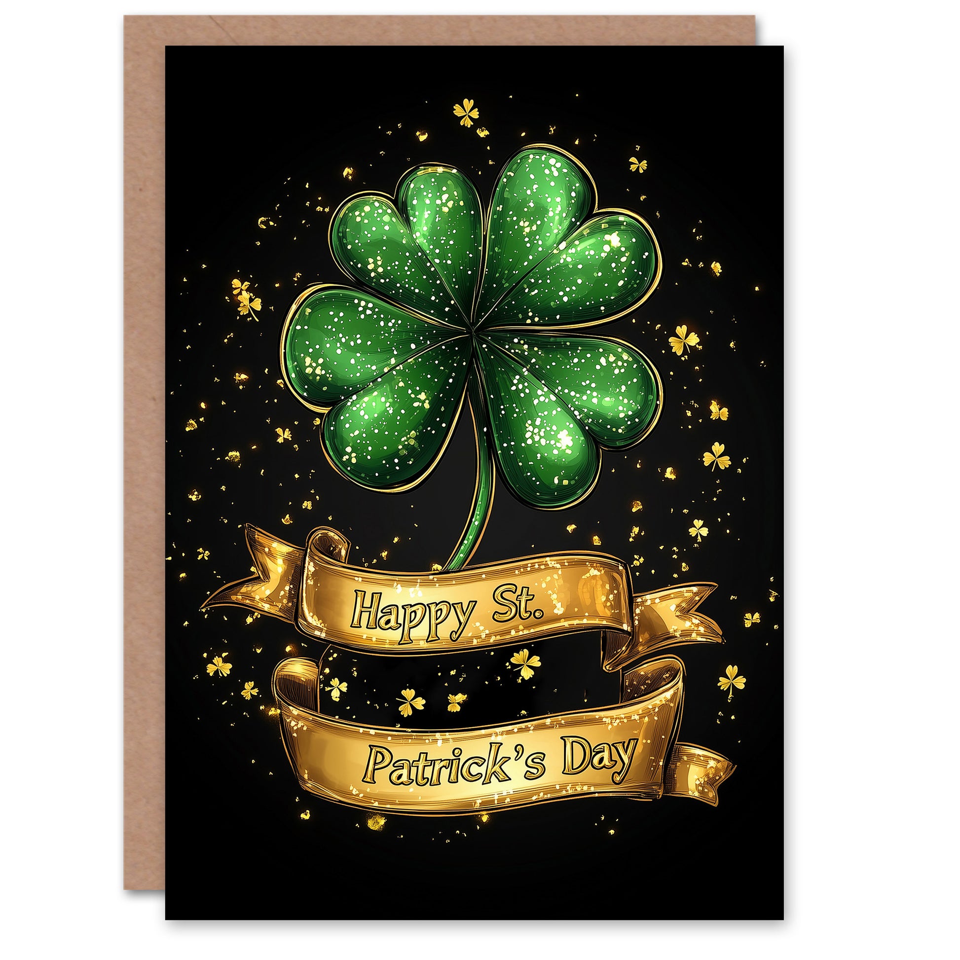 St. Patrick's Day Card Golden Four Leaf Clover Blank Greeting Card