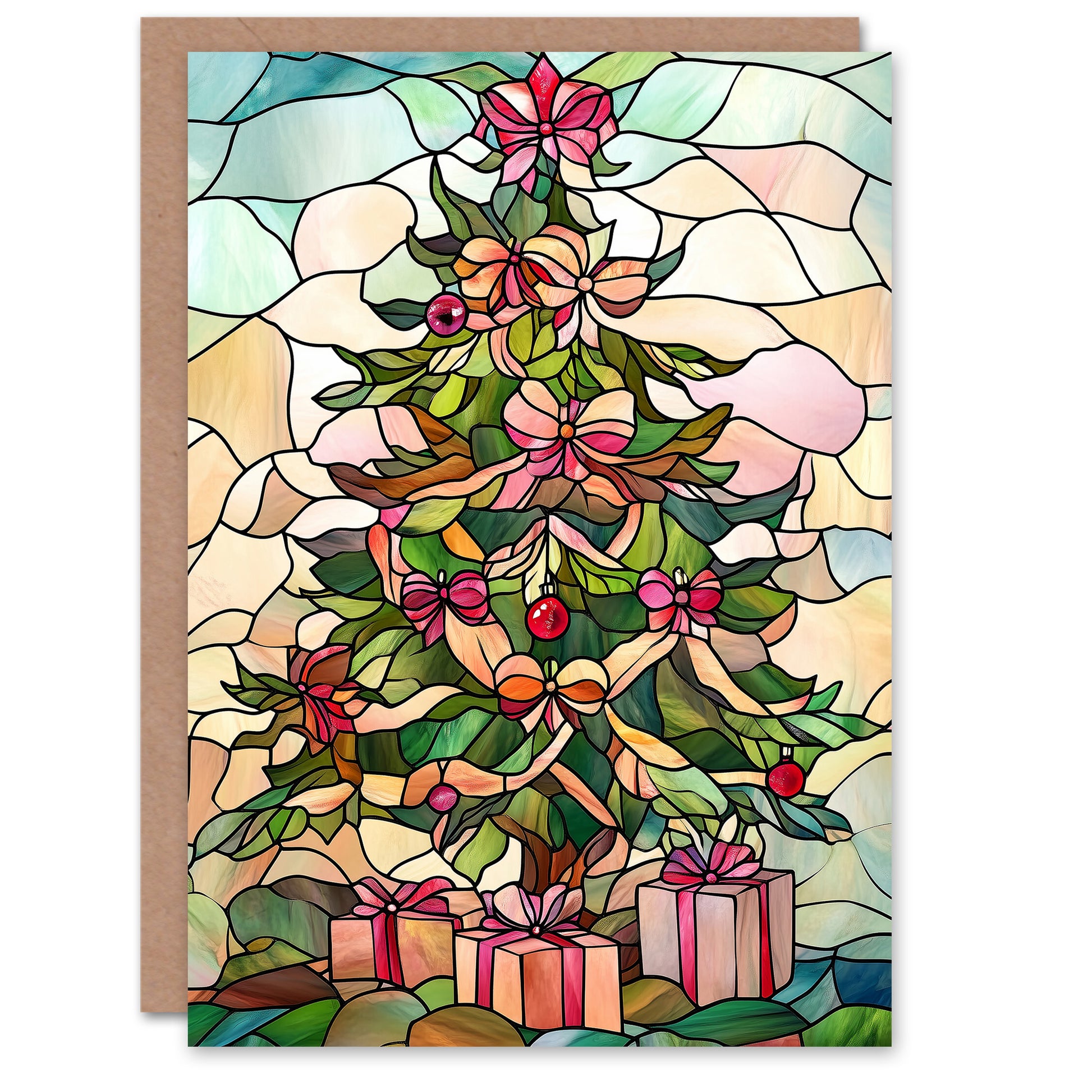 Stained Glass Decorated Tree with Presents Festive Christmas Card