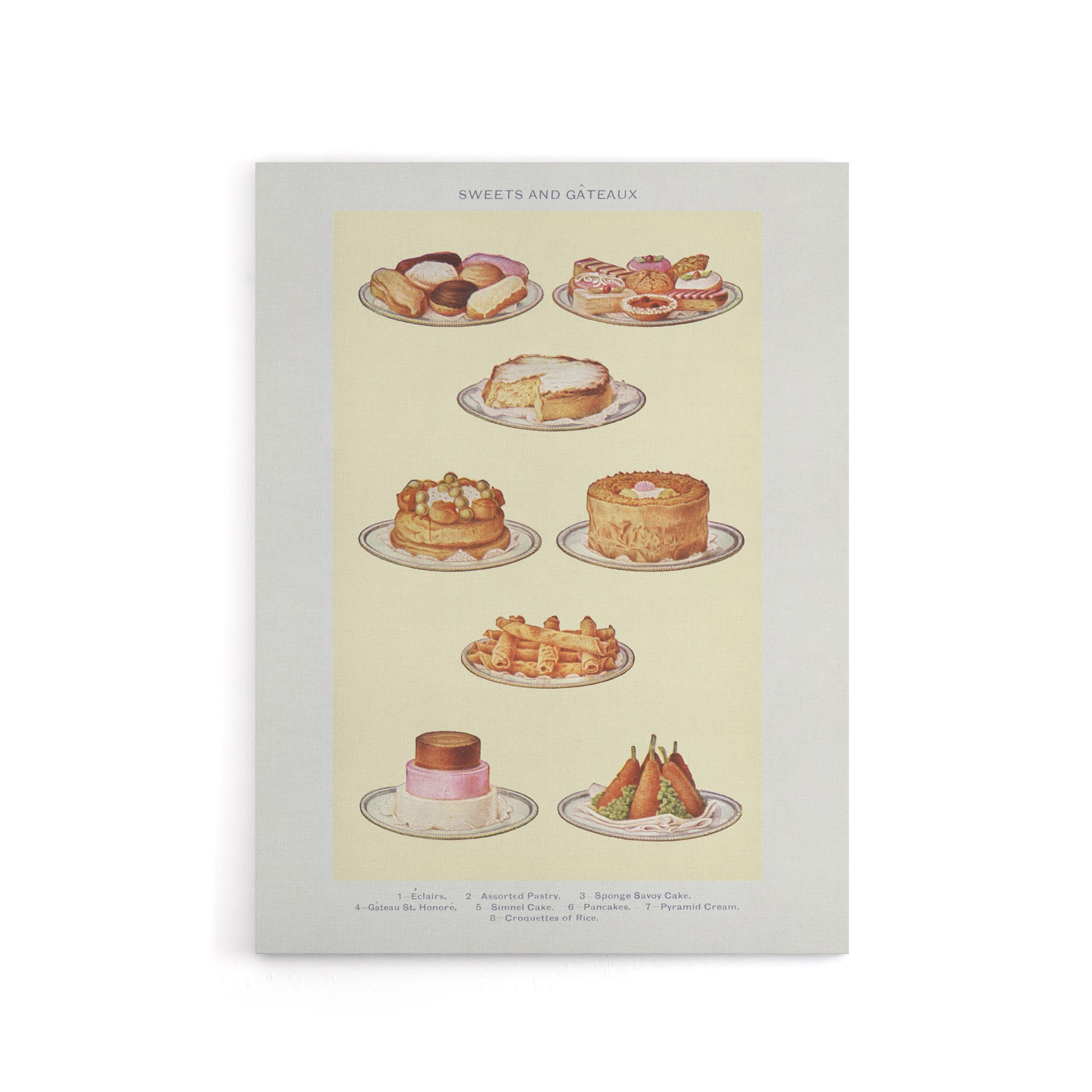 Sweets and Gateaux Cakes Mrs Beeton Canvas Wall Art Print