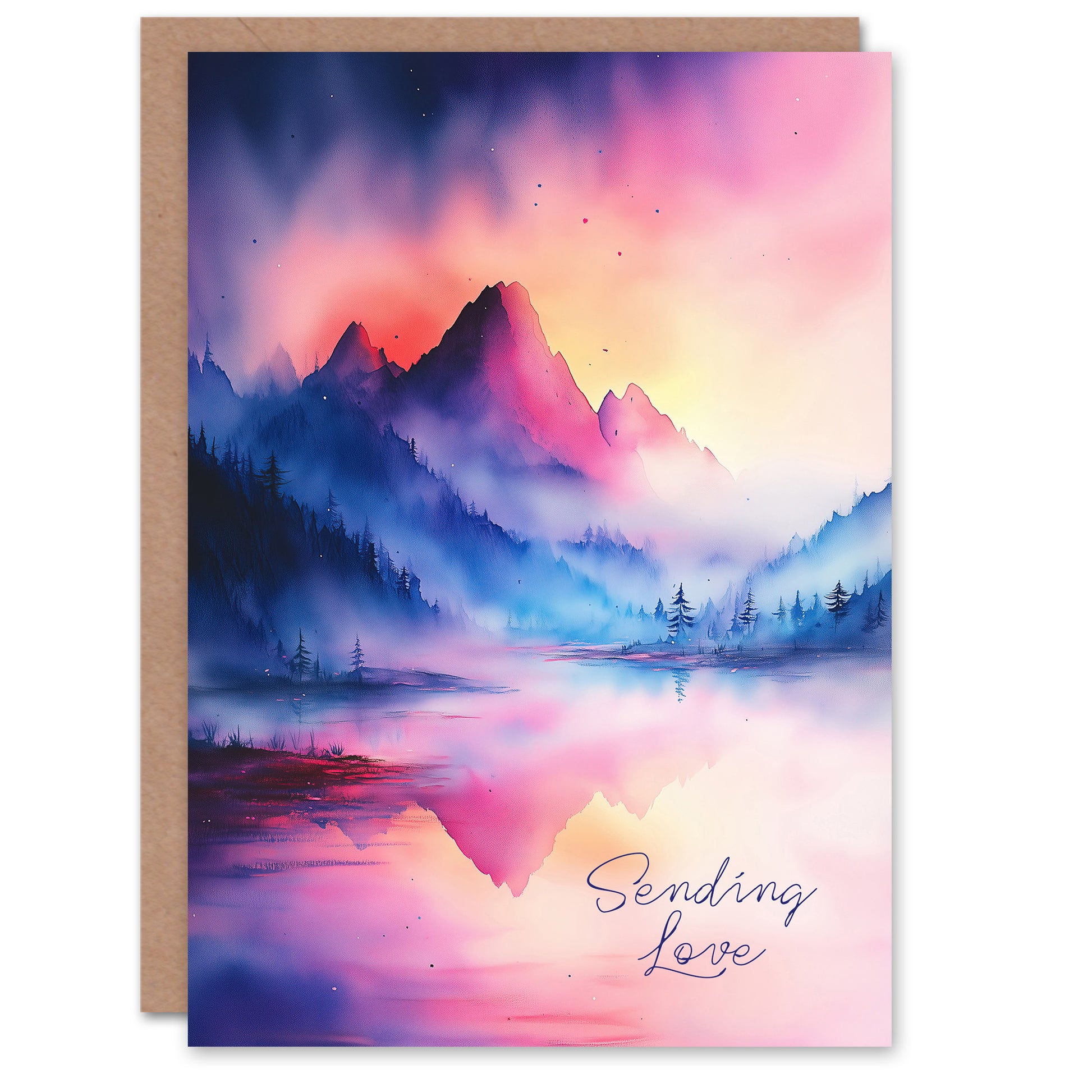 Sympathy Greeting Card Sending Love Watercolour Mountain Lake Landscape
