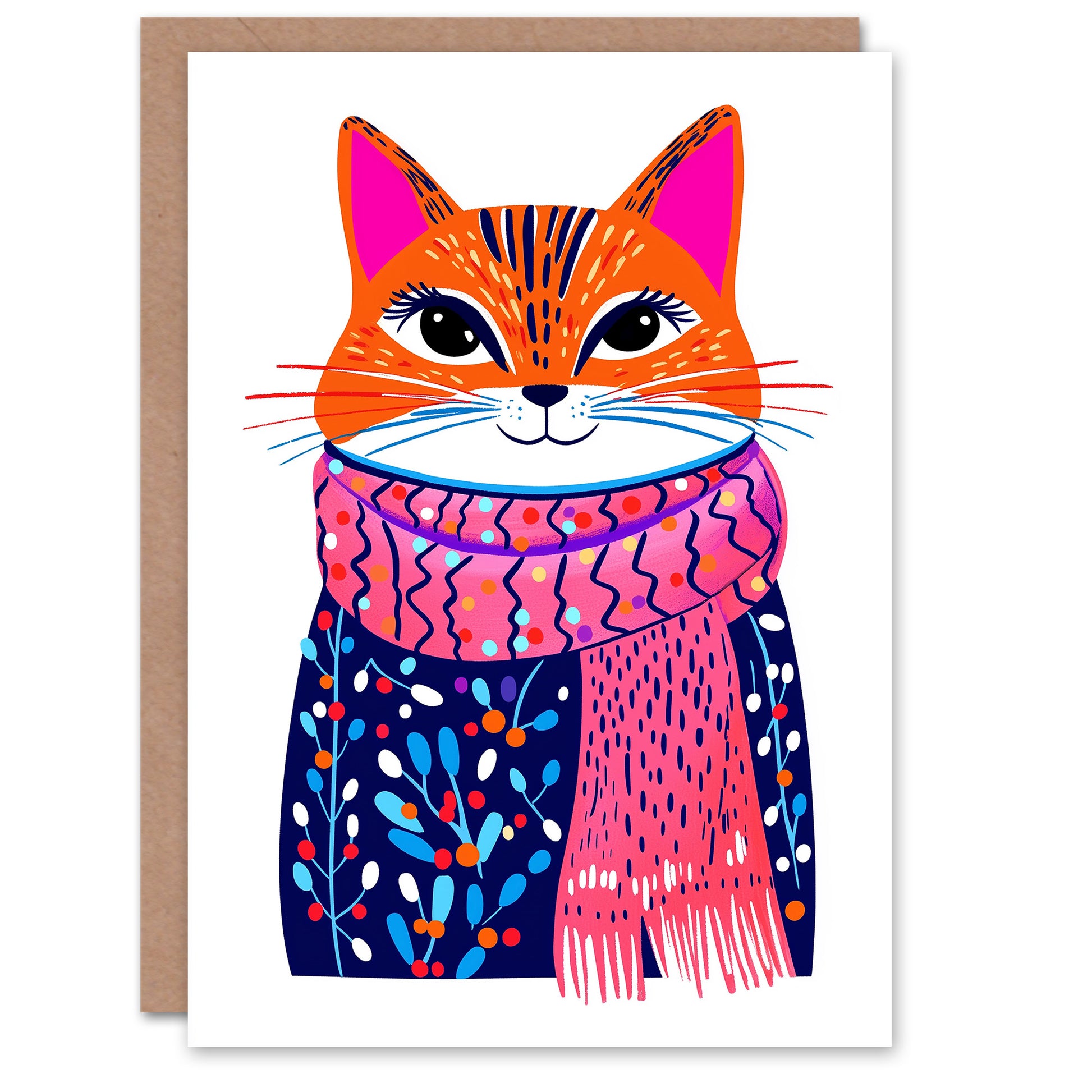 Tabby Winter Floral Jumper Pink Scarf Cat Lover Christmas Card