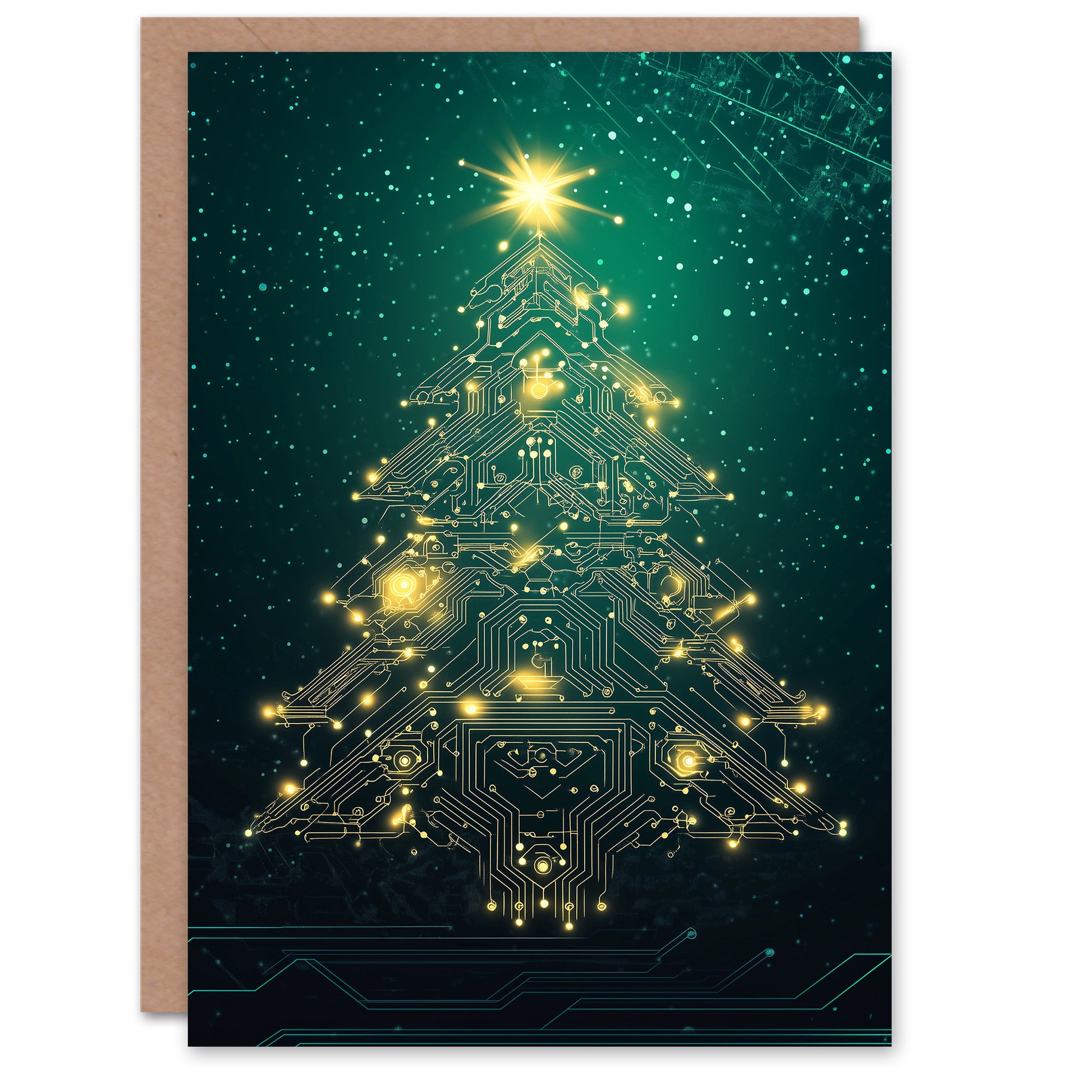 Technology Circuit Board Chip Tree Modern Christmas Card
