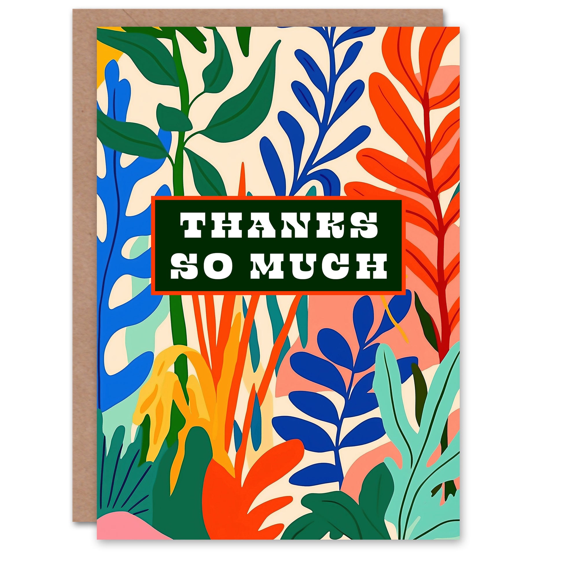 Thank You Greeting Card Thanks So Much Plant Lover Bold Botanical Leaves