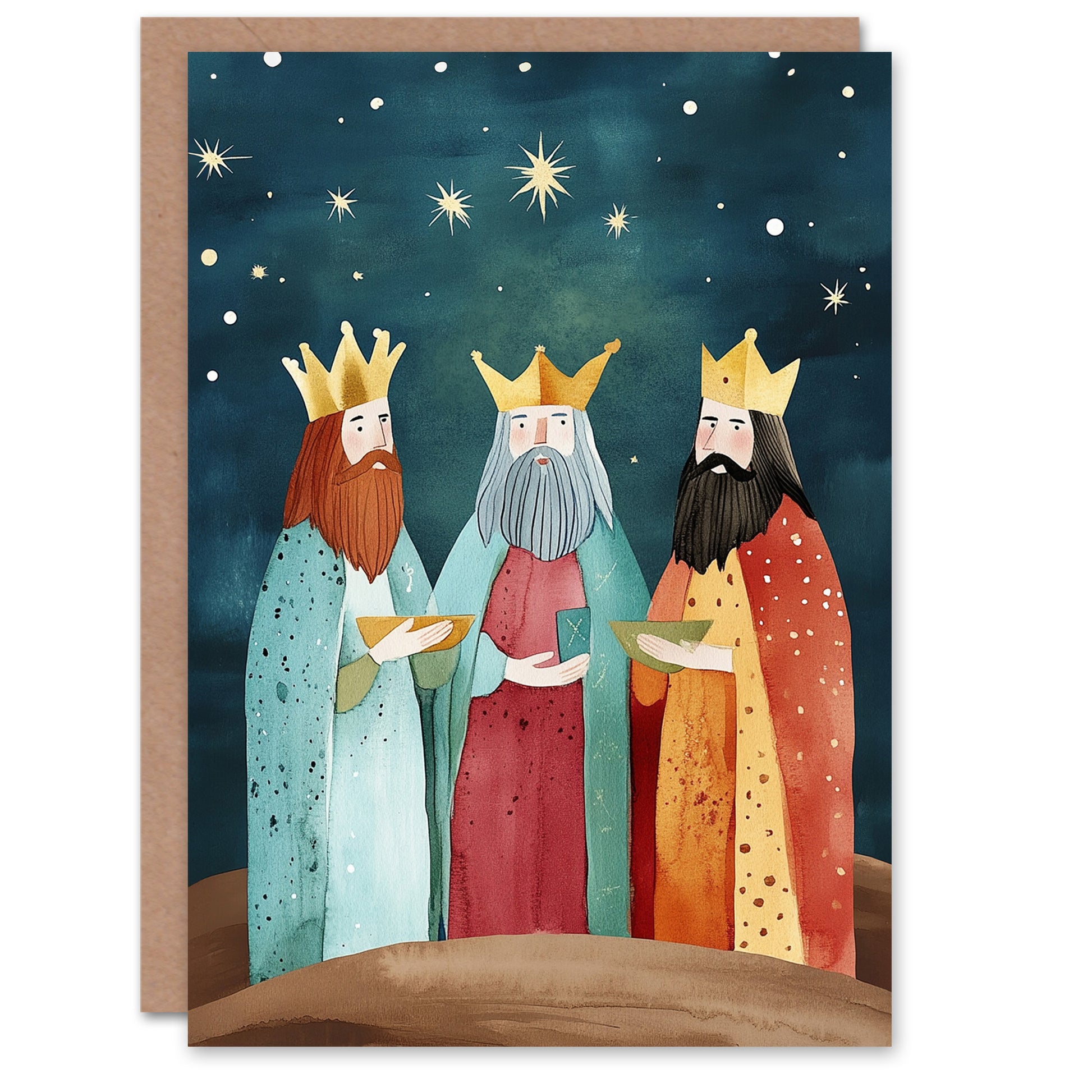 The Three Kings Wise Men Folk Art Festive Xmas Christmas Card