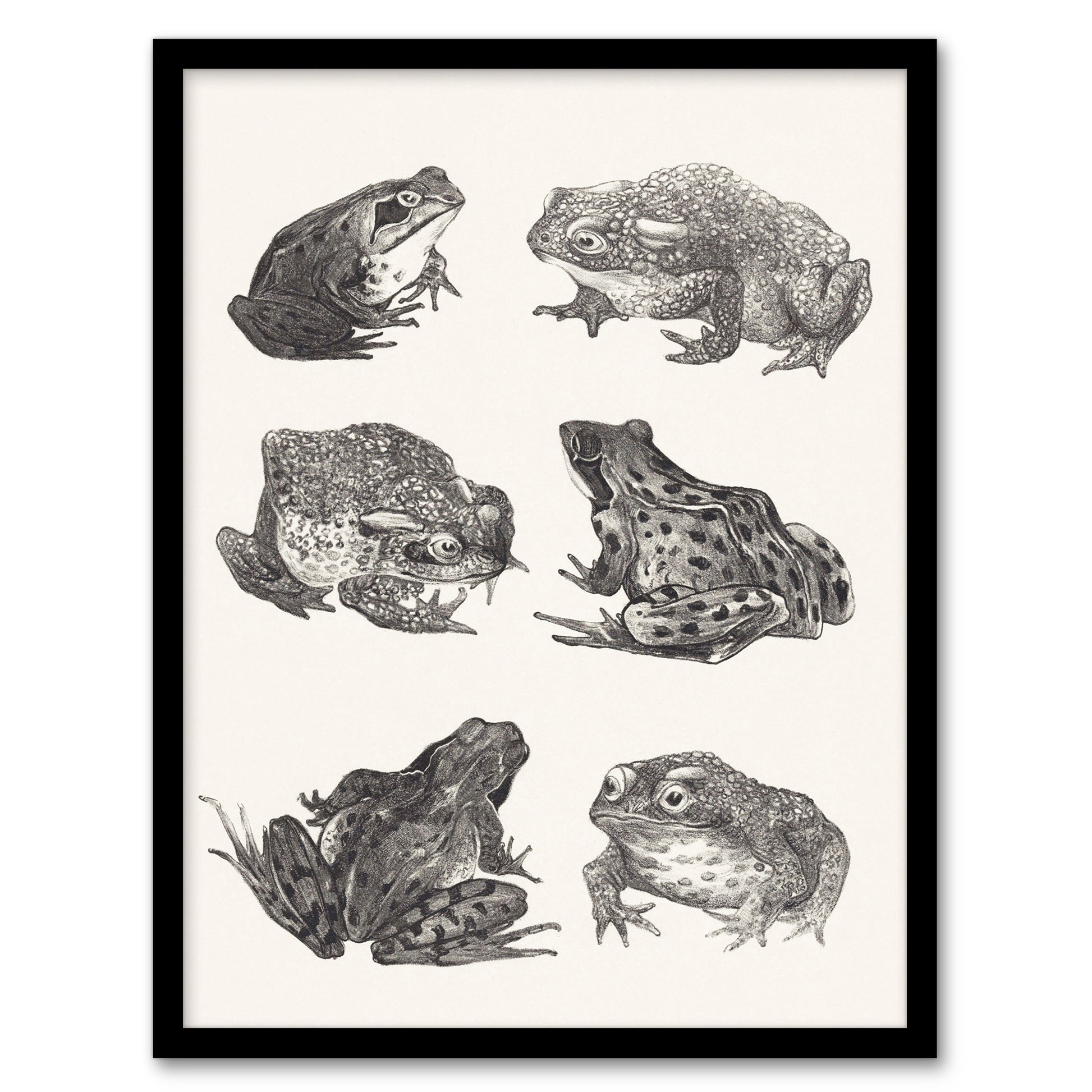 Theo van Hoytema Framed Wall Art Six Frogs and Toads Pencil Drawing Home Décor