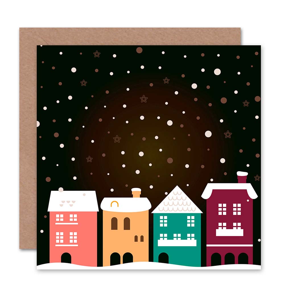 Town Houses Street Night Snow Simple Modern Christmas Card