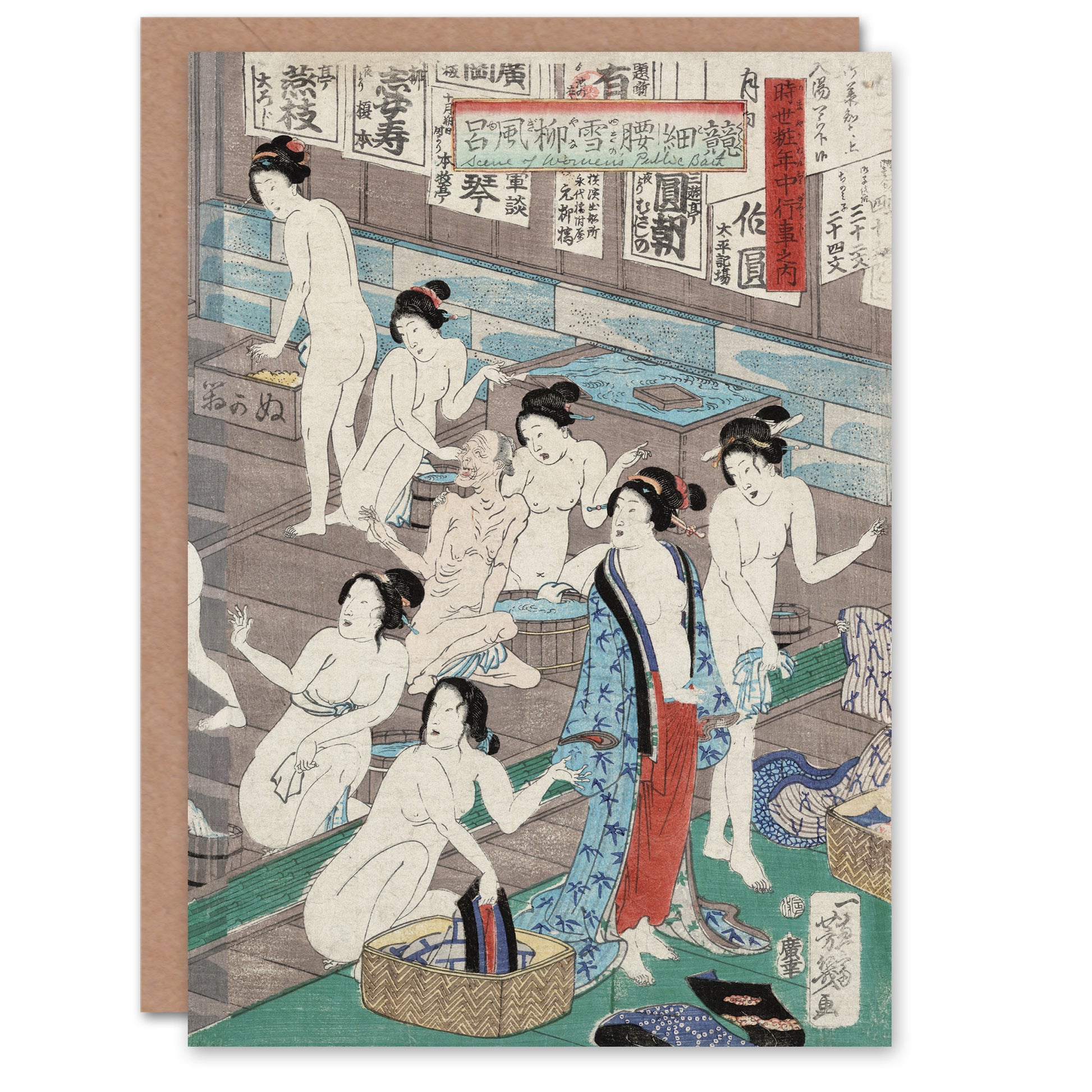 Toyohara Kunichika Japanese Women In Public Bath Greetings Card