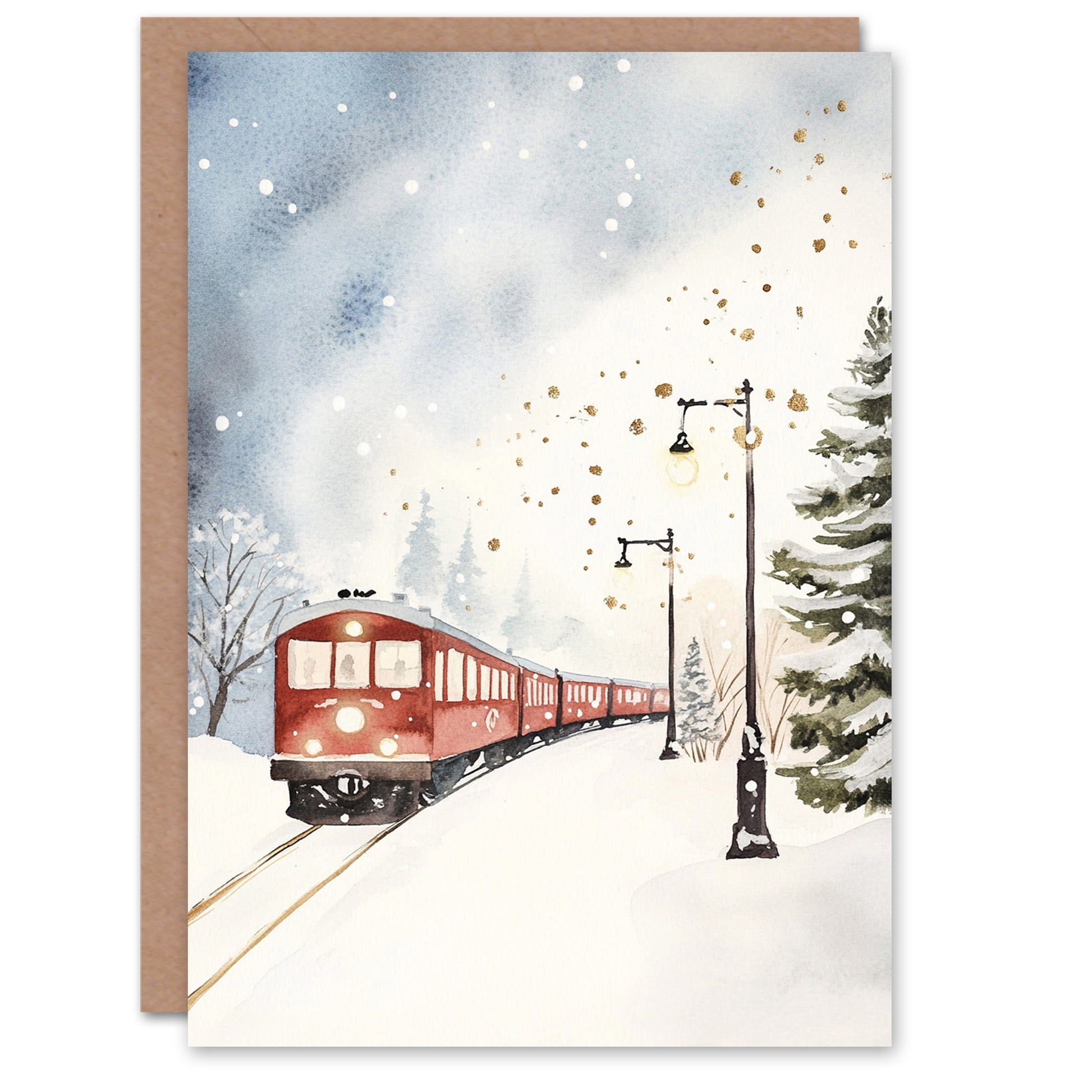 Train Tracks Snow Winter Landscape Festive Christmas Card