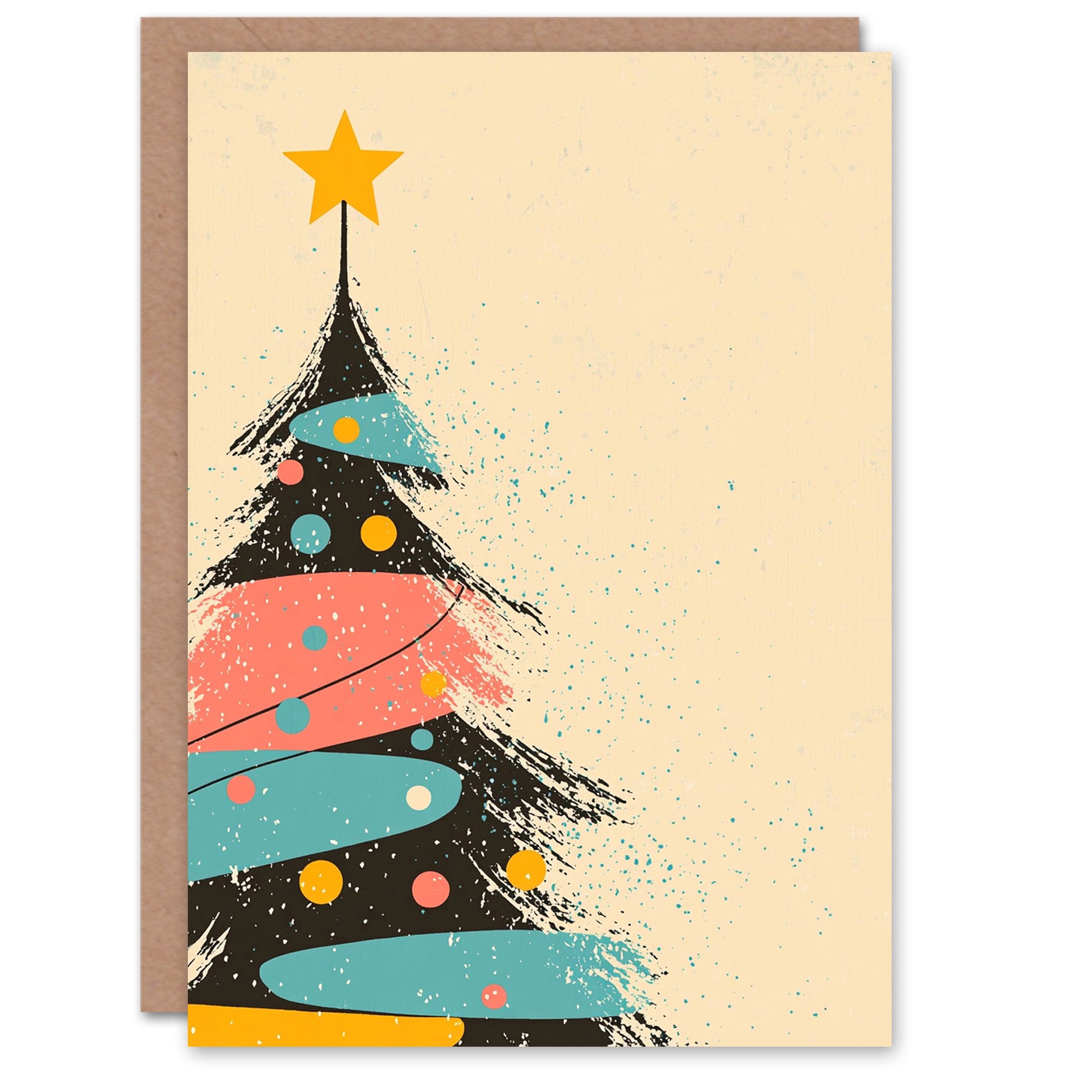 Tree Pink Blue Yellow Mid Century Modern Christmas Card