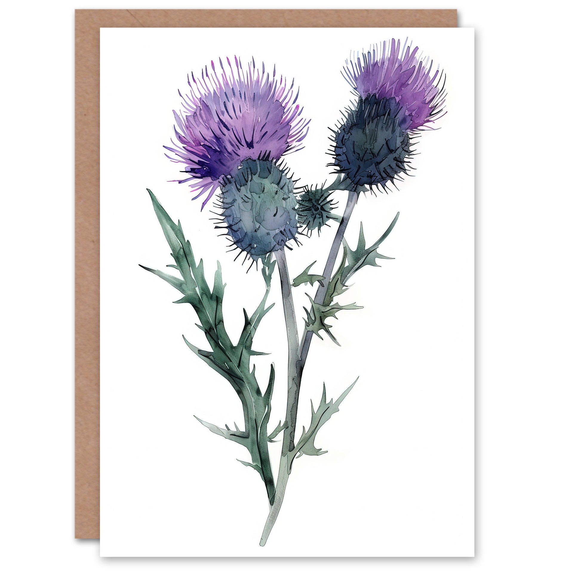 Two Scottish Thistle Flower Blooms Watercolour Greeting Card