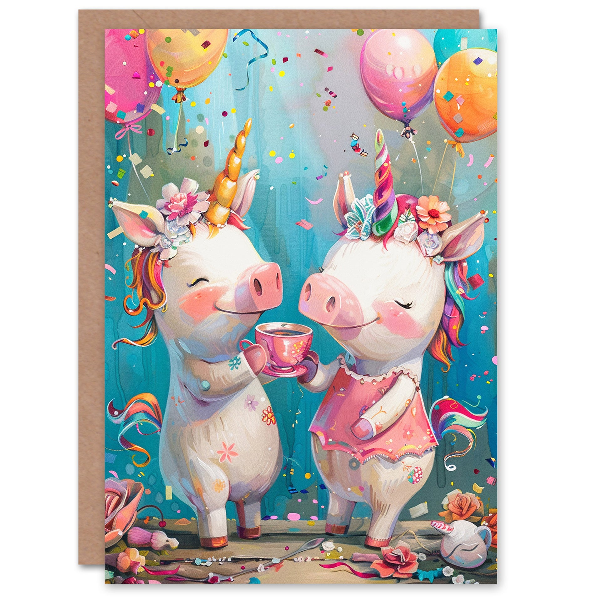 Unicorn Piglet Party Cute Pig Balloons Kids Birthday Card