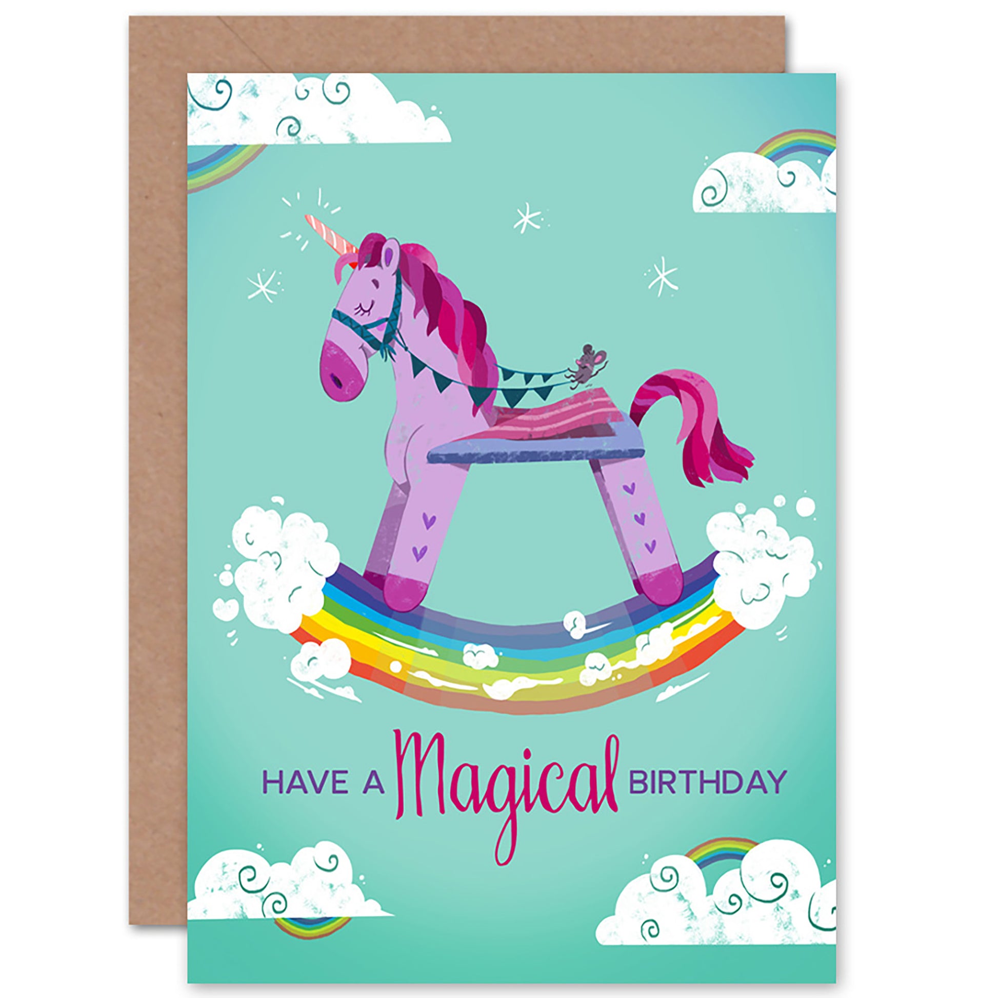 Unicorn Rocking Magical Kids Birthday Card