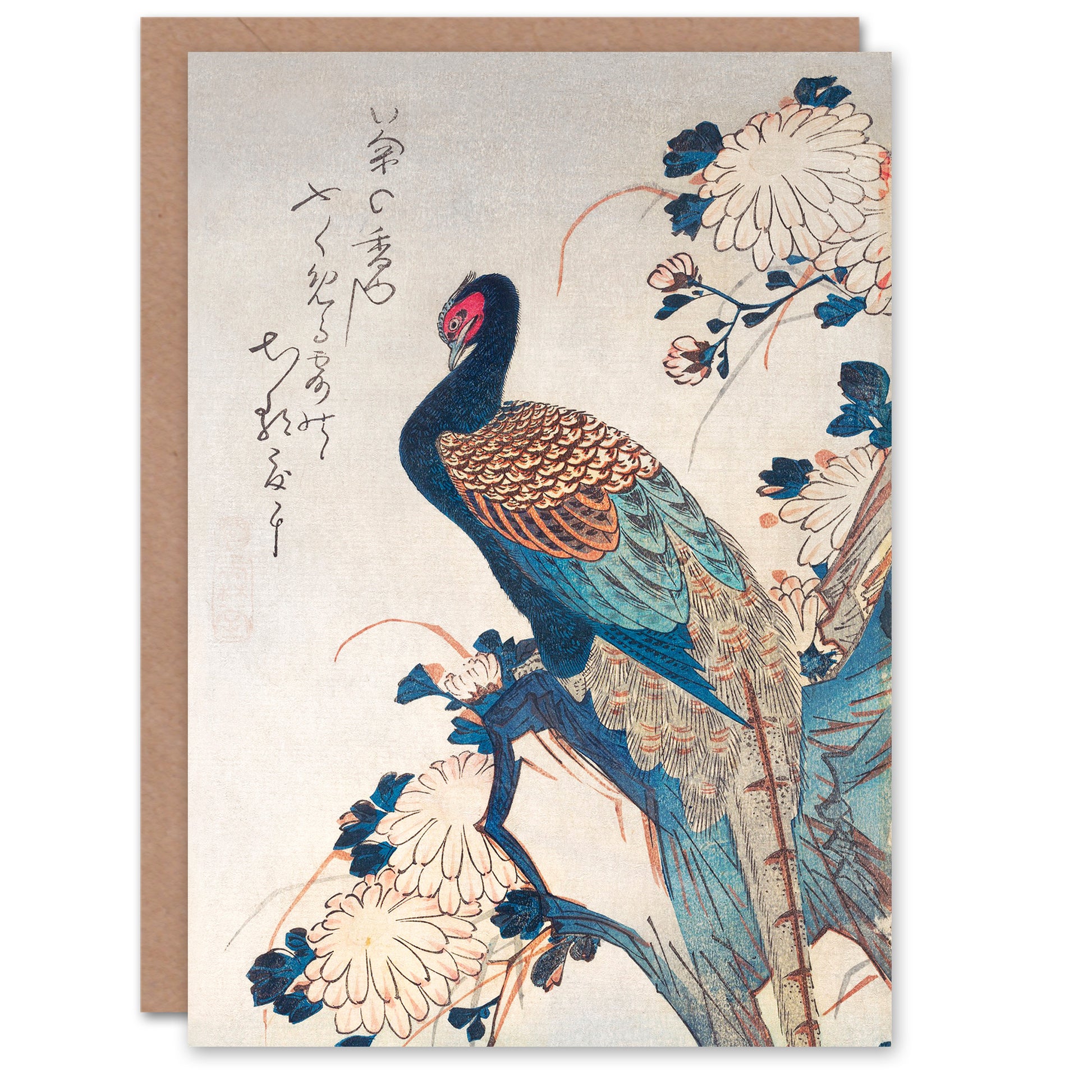 Utagawa Hiroshige Japanese Pheasant And Chrysanthemums Greetings Card