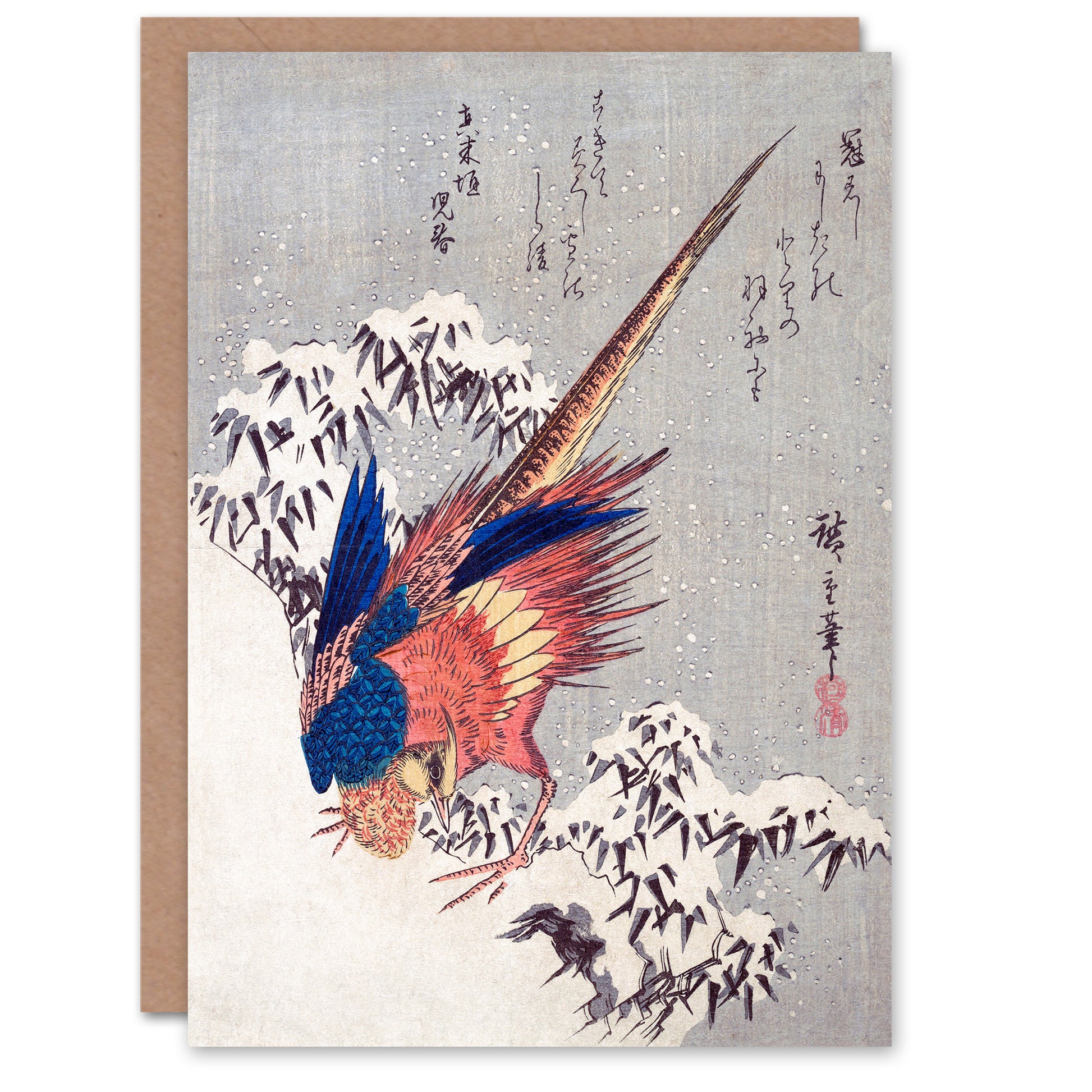 Utagawa Hiroshige Japanese Pheasant In Snow Greetings Card