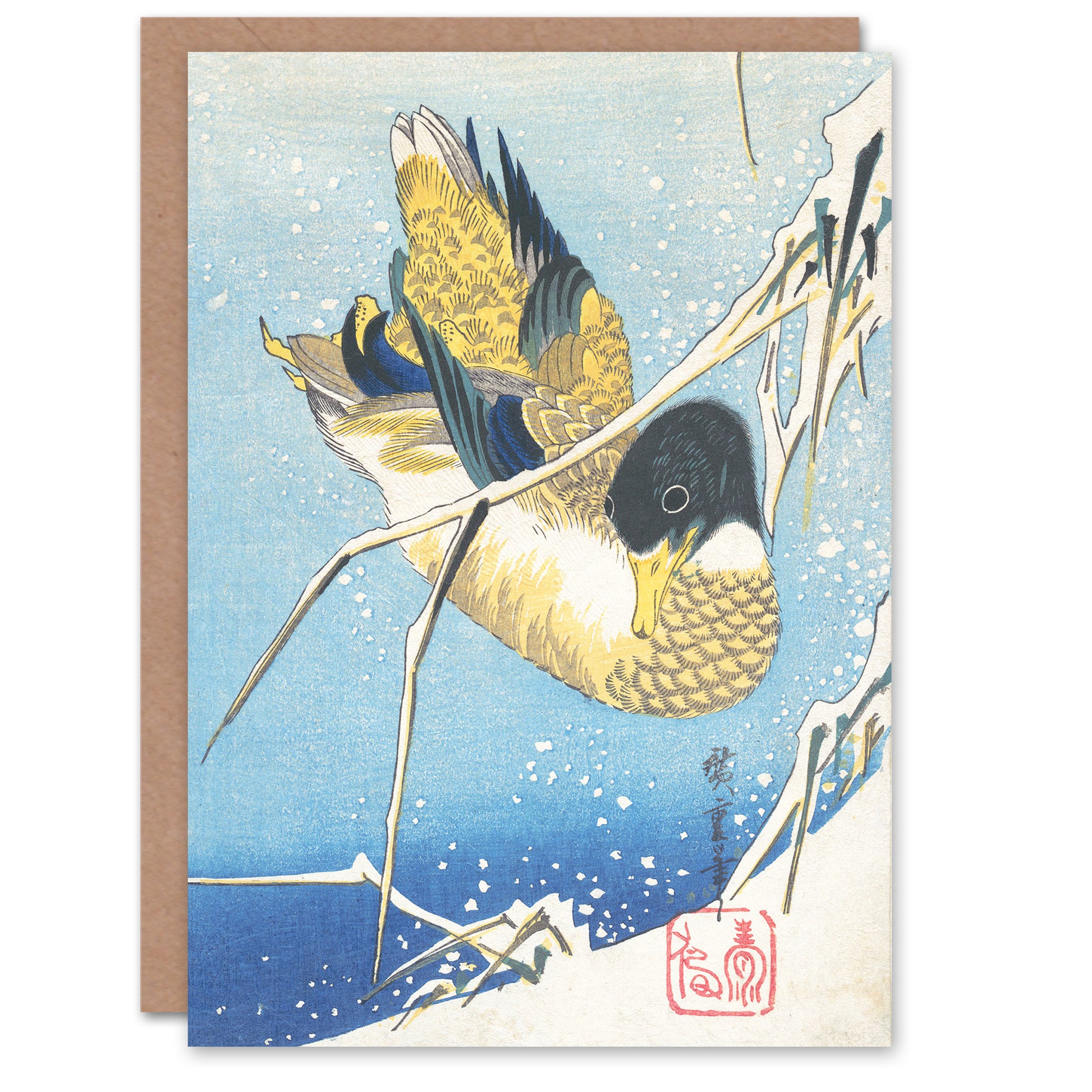 Utagawa Hiroshige Mallard Duck And Snow Covered Reeds Greetings Card
