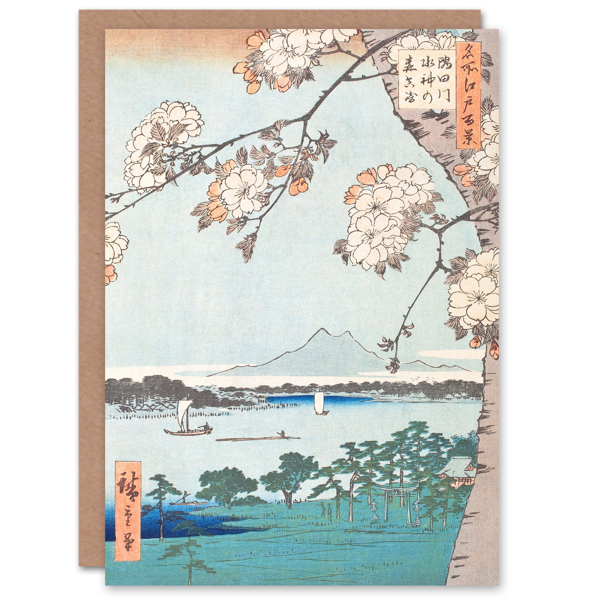 Utagawa Hiroshige Suijin Shrine And Massaki On Sumida River Greetings Card