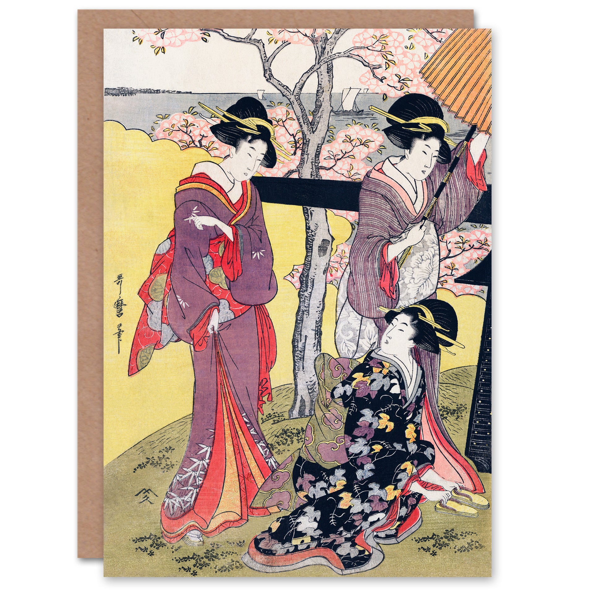 Utamaro Kitagawa Japanese Cherry Blossom Viewing At Gotenyama Greetings Card
