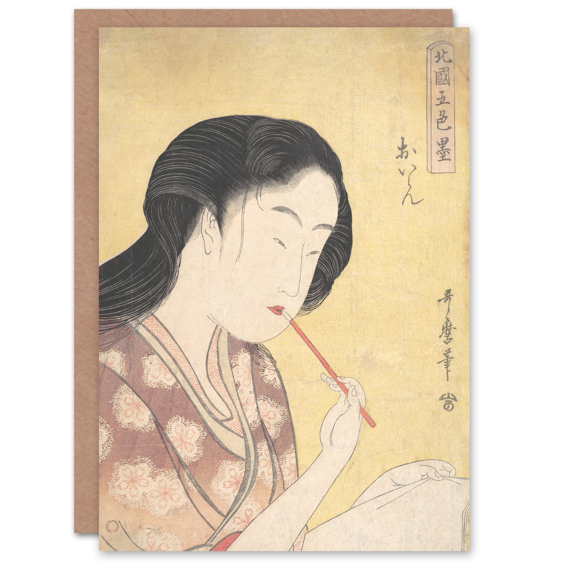 Utamaro Kitagawa Japanese Oiran Applying Lipstick Greetings Card