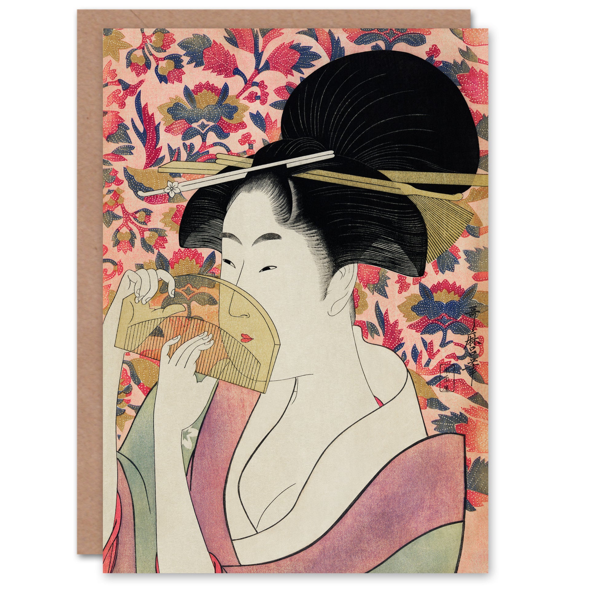 Utamaro Kitagawa Japanese Woman With A Comb Portrait Greetings Card
