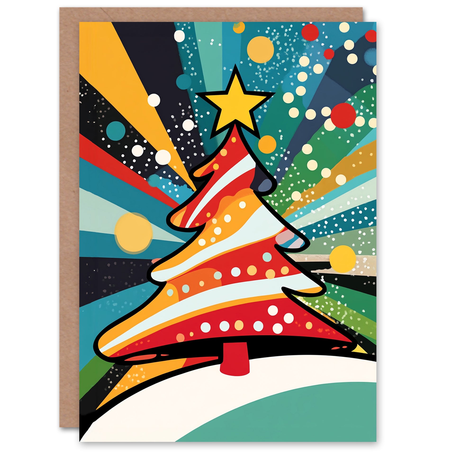 Vibrant Colourful Decorated Tree Pop Art Xmas Christmas Card