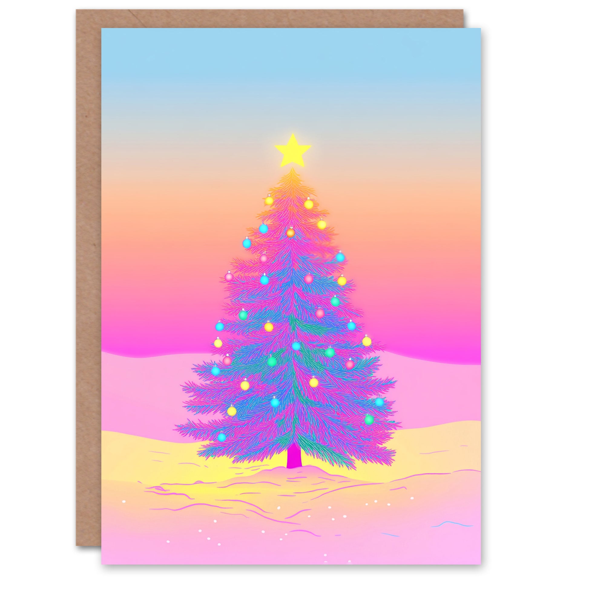 Vibrant Colourful Pink Blue Yellow Tree Xmas Christmas Card