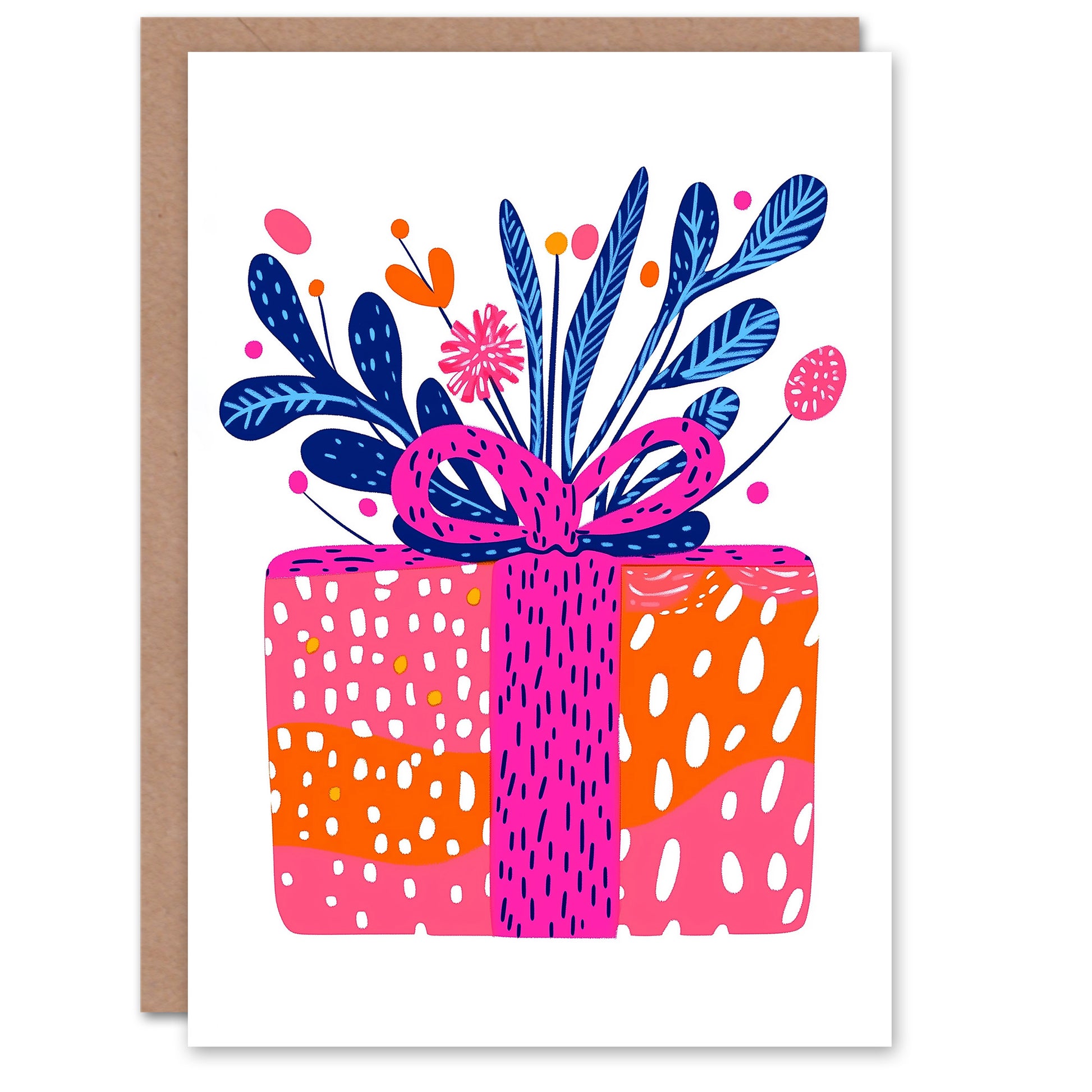 Vibrant Modern Folk Art Wrapped Present Festive Christmas Card