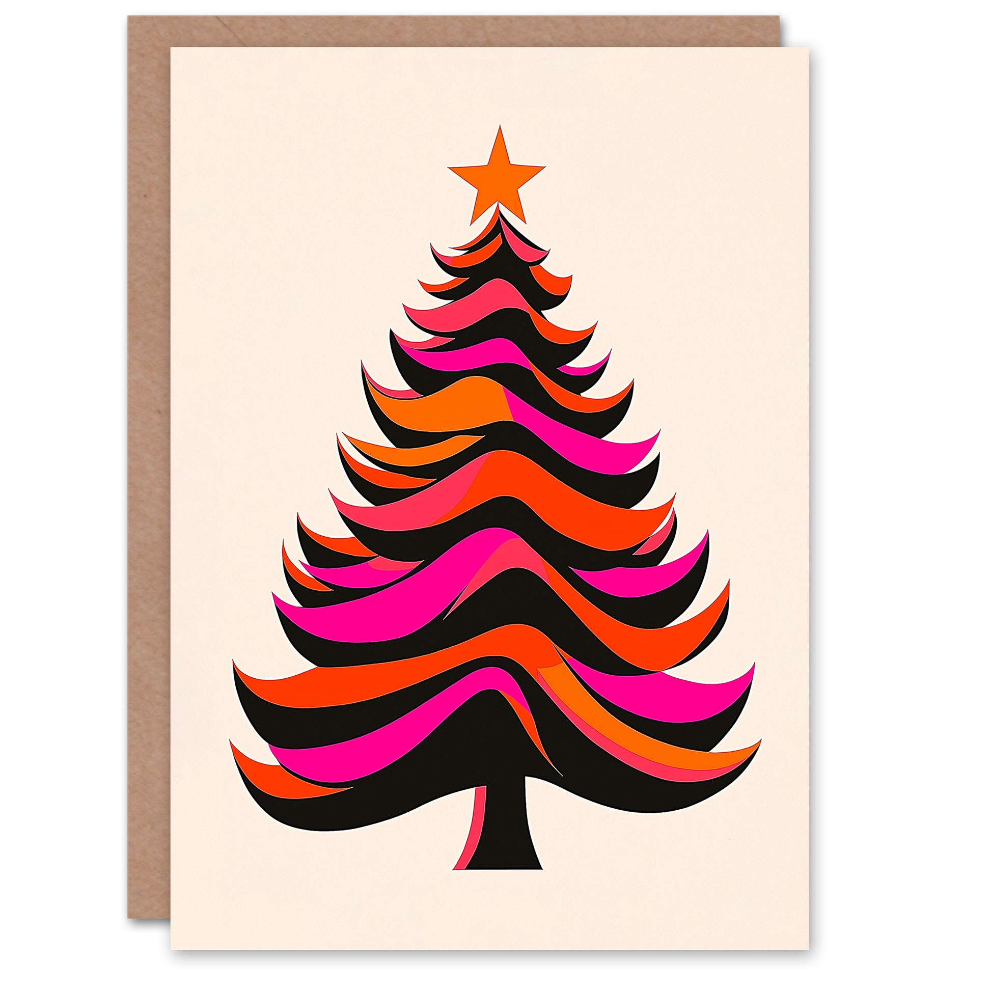 Vibrant Tree Orange Pink Fuchsia Fun Xmas Christmas Card