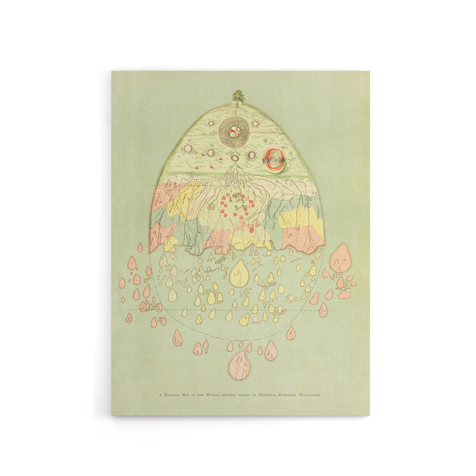 Vintage Burmese Map of the World Griggs Canvas Wall Art Print